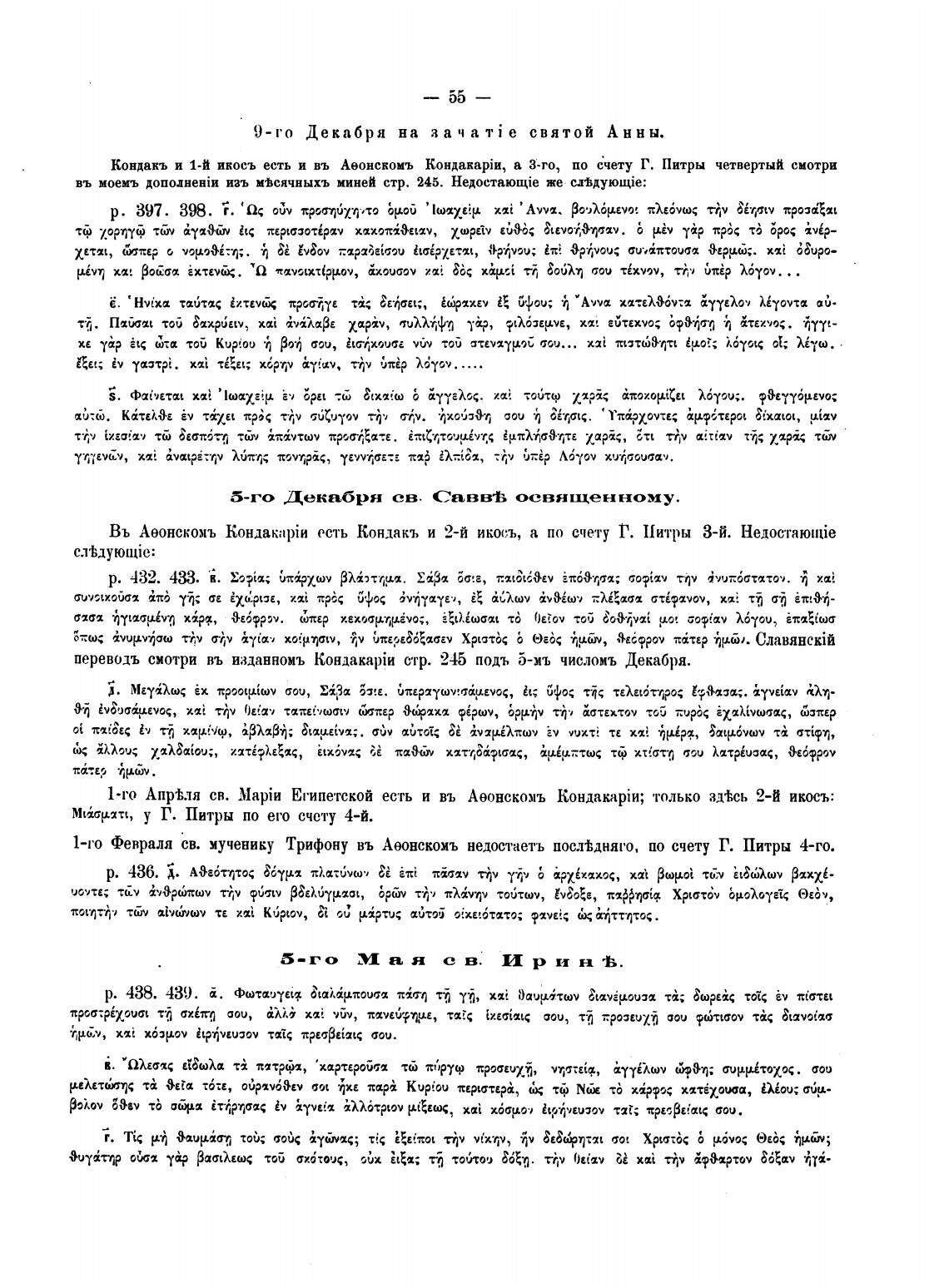 Кондакъ и 1-й икосъ есть и въ Аеонскомъ КондакарЈи, а 3-го, по счету Г. Питры четвертый смотри