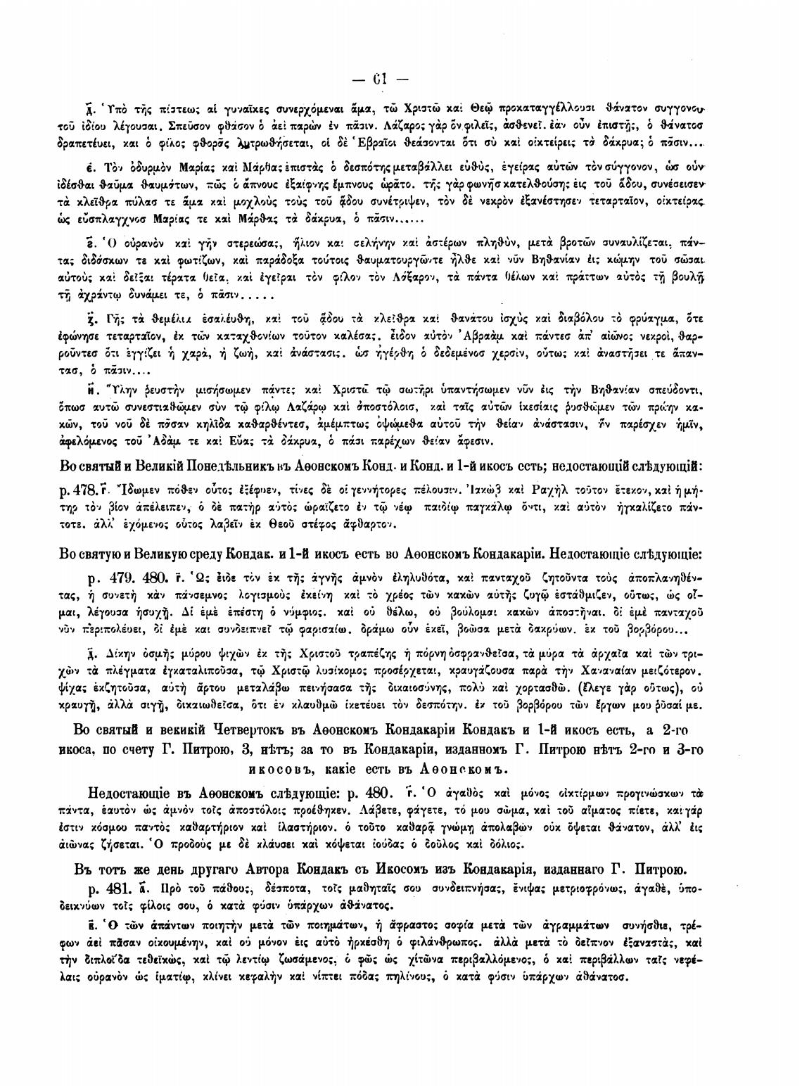 В-о свитый и Понедћ.тьникъ нь Аеонскомъ Конд. и Конд. и 1-й икосъ есть; недостаюијИ