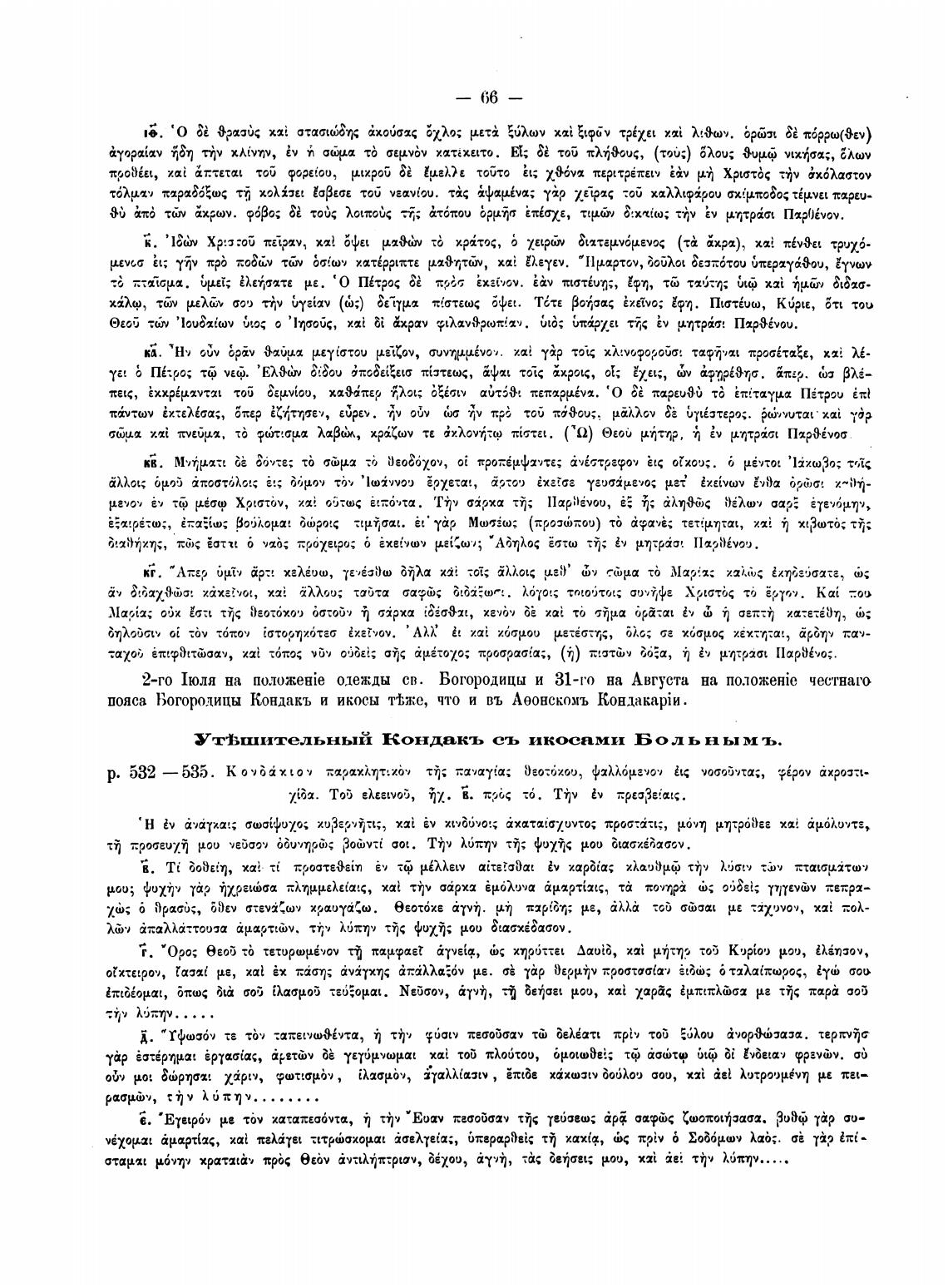 пояса Богородицы Кондакъ и икосы тЬж•е, что и въ Аеонскомъ