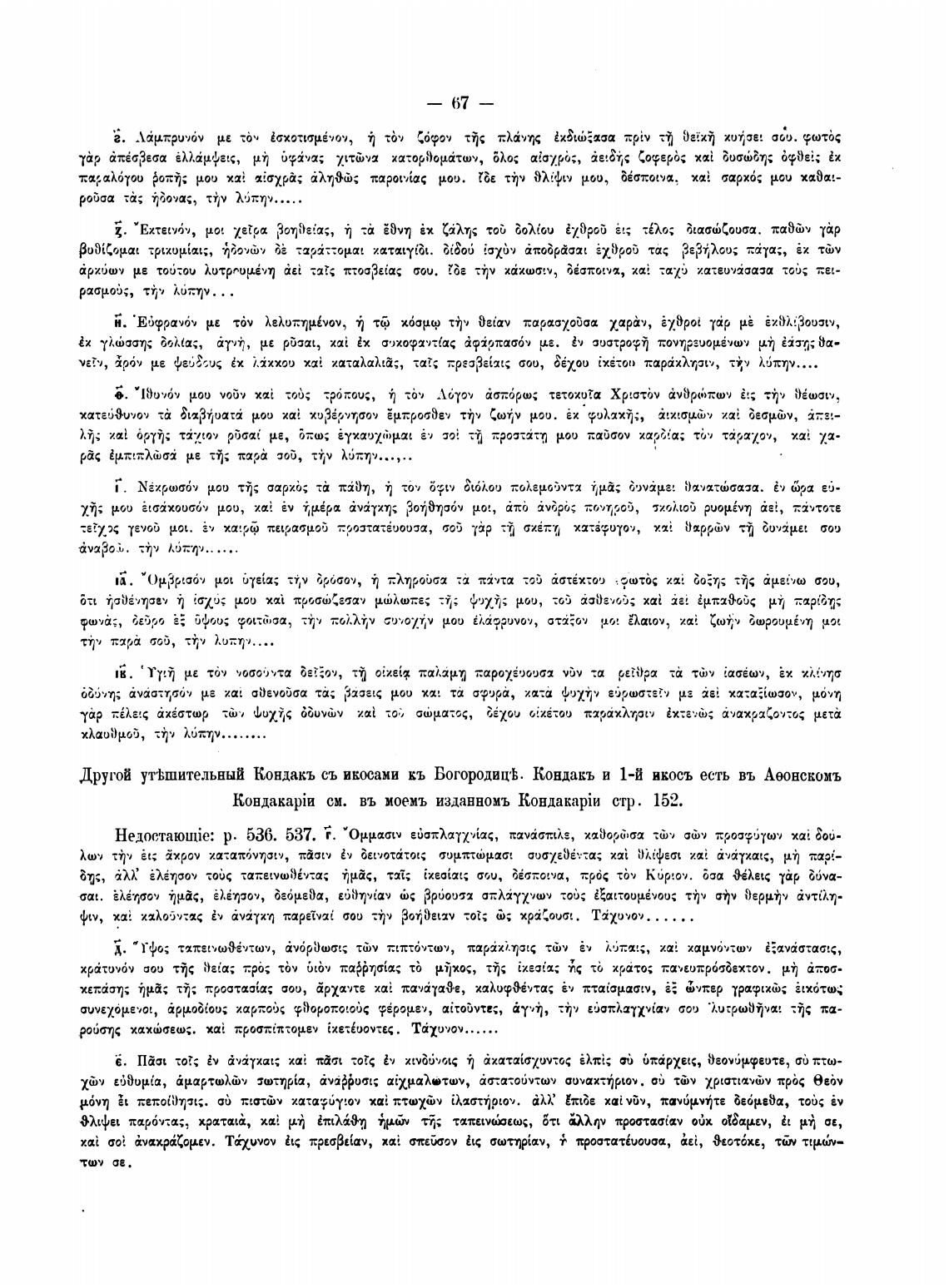 Другой утћшительный Кондакъ съ кь БогородищЬ. Кондакъ и 1-й икосъ есть въ Аеонскомъ