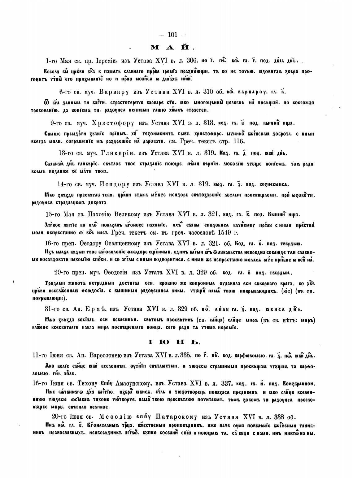 1-го Мая св. пр. IepeMik4, изъ Устава XVI в. л. З(У5. по i. пт. Ю. гл. г. под. дкп хнь.