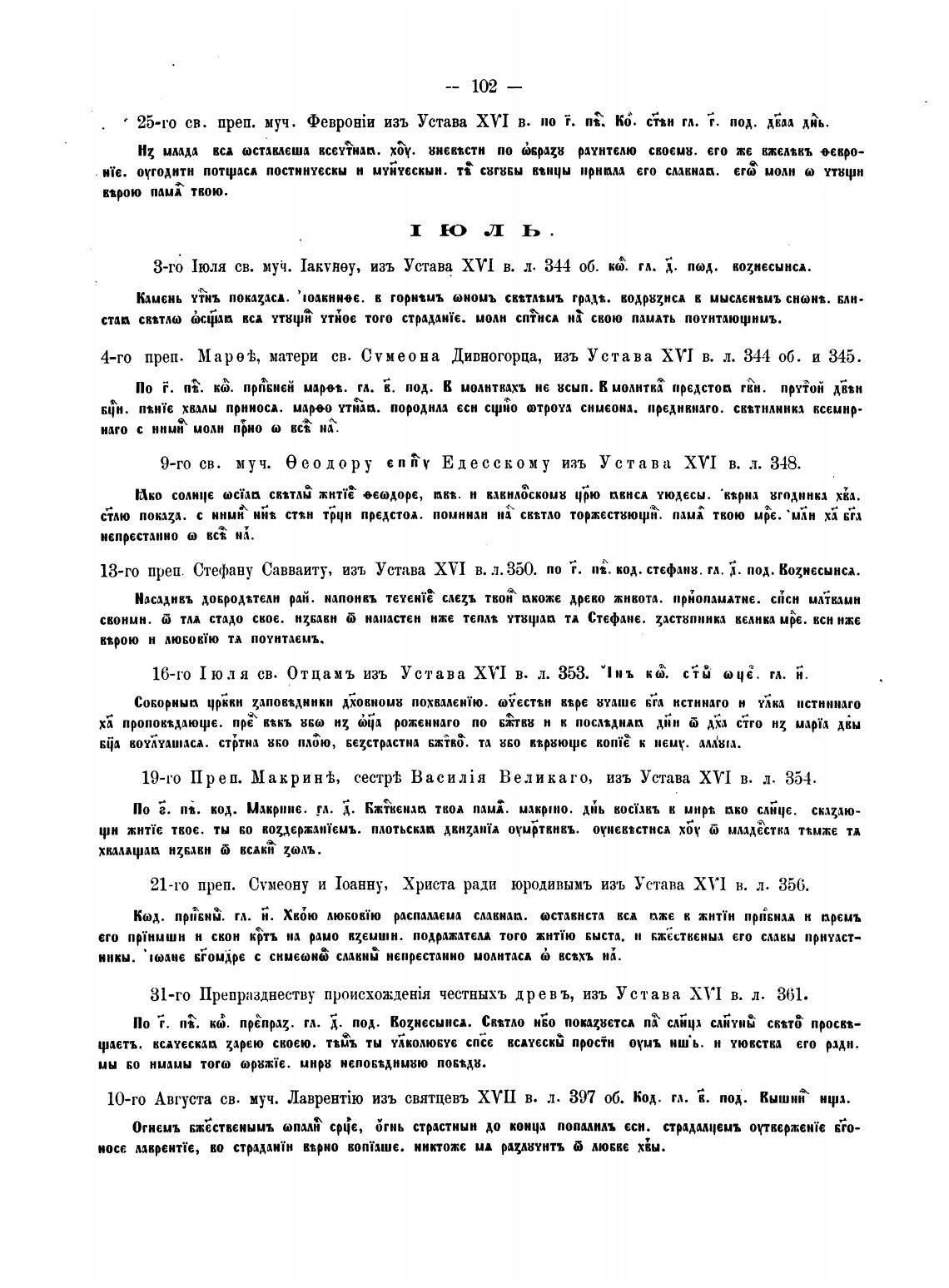16-го 1 юля св. Отцам ъ изъ Устава XVI в. л. 353. м 1нъ кВ. са оча. гл. и.