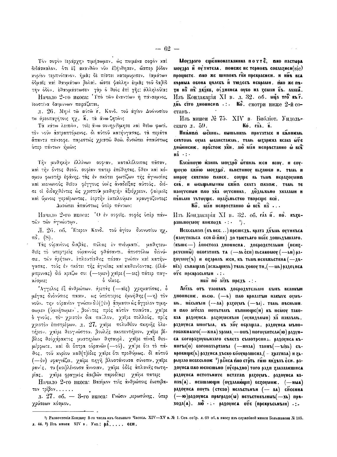 Разночте1Й* Кондаку 8-го числа изъ большаго Часоел. XIY—XV 1. Сев. собр. д. 60 об. пзъ служебноћ минеи Вольтакова У 185.