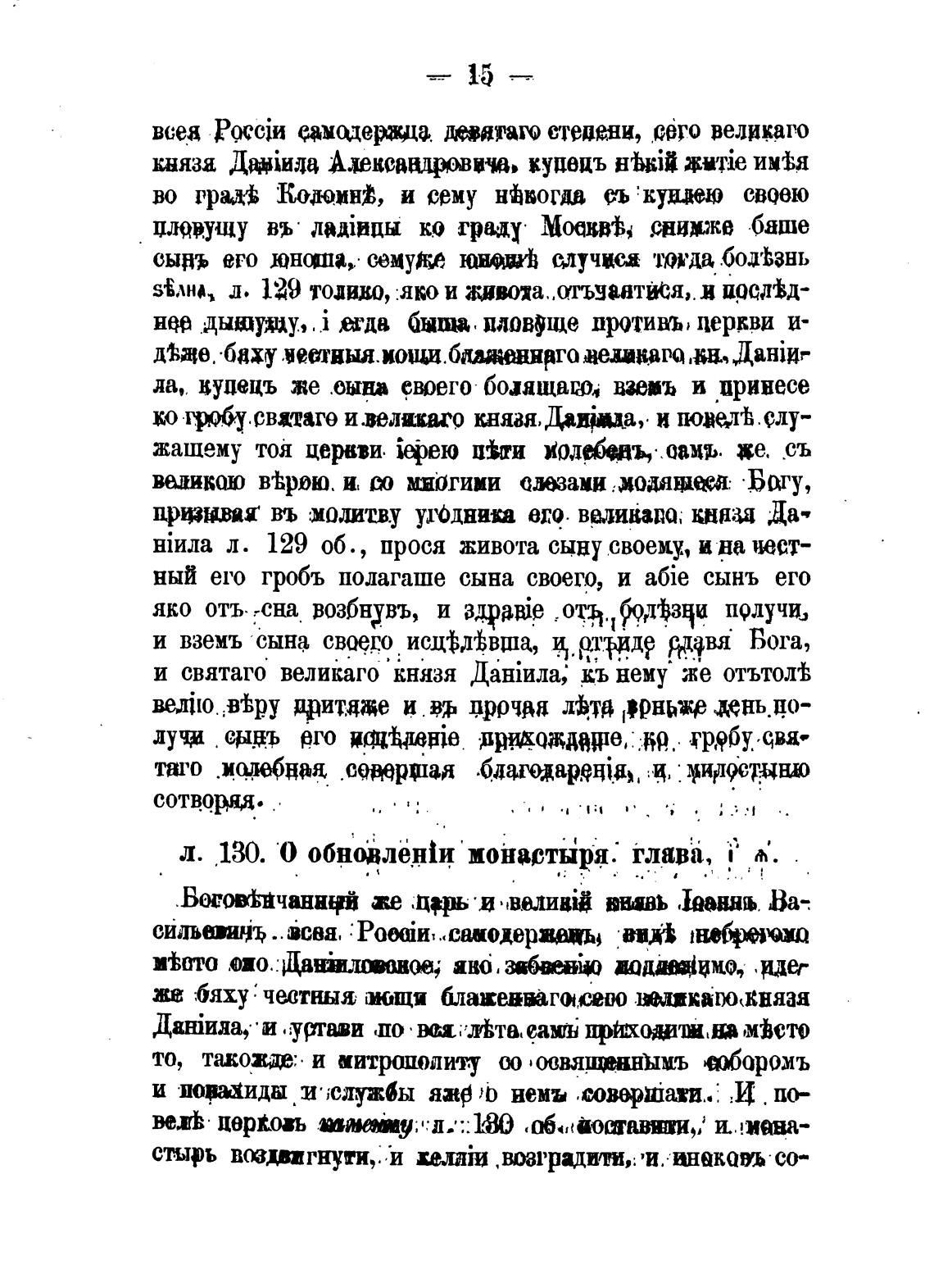 л. 130. 0 обновленйи монастыря: глава, i'• Х.