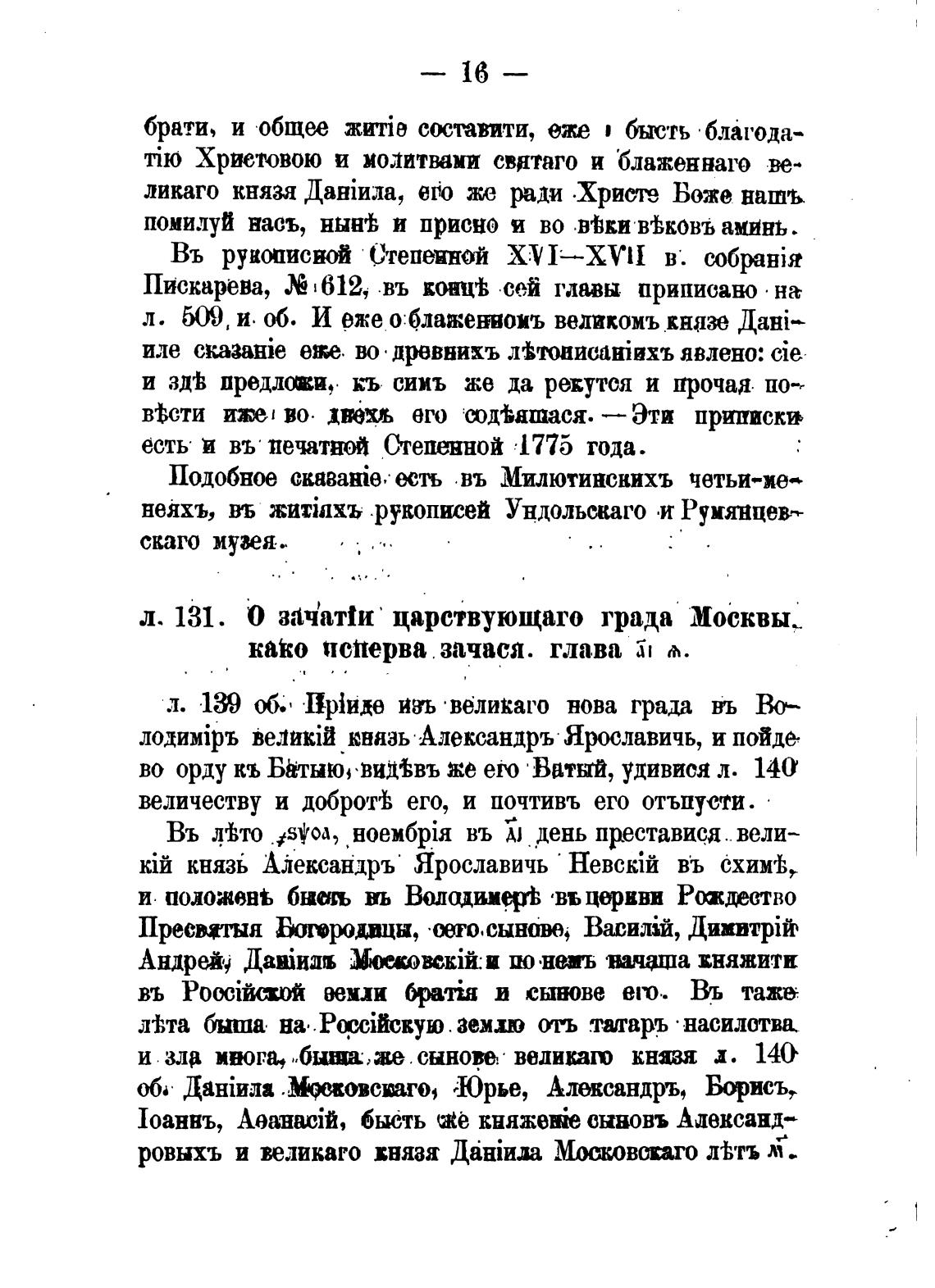 л. 131. О зач'ат1и царствующаго града Москвы,_