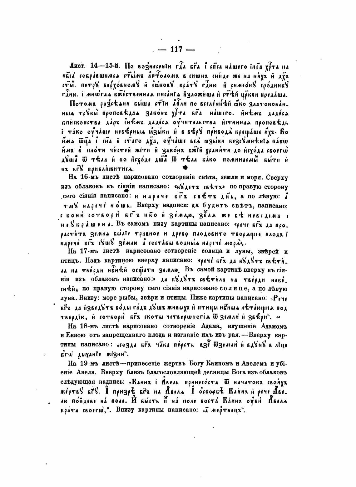На 17-мъ листь нарисовано e0TBopeHie солнца и луны, зв%рей и