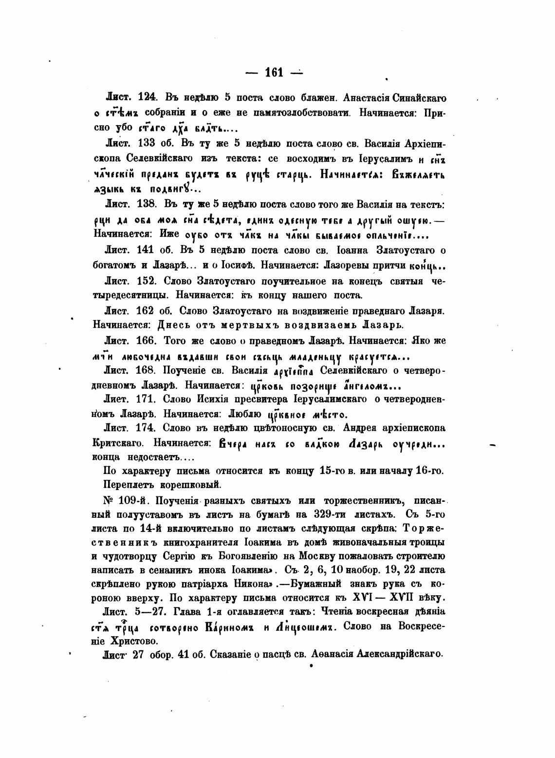 У 109-й. разныхъ святыхъ иди торжественникъ, писан-