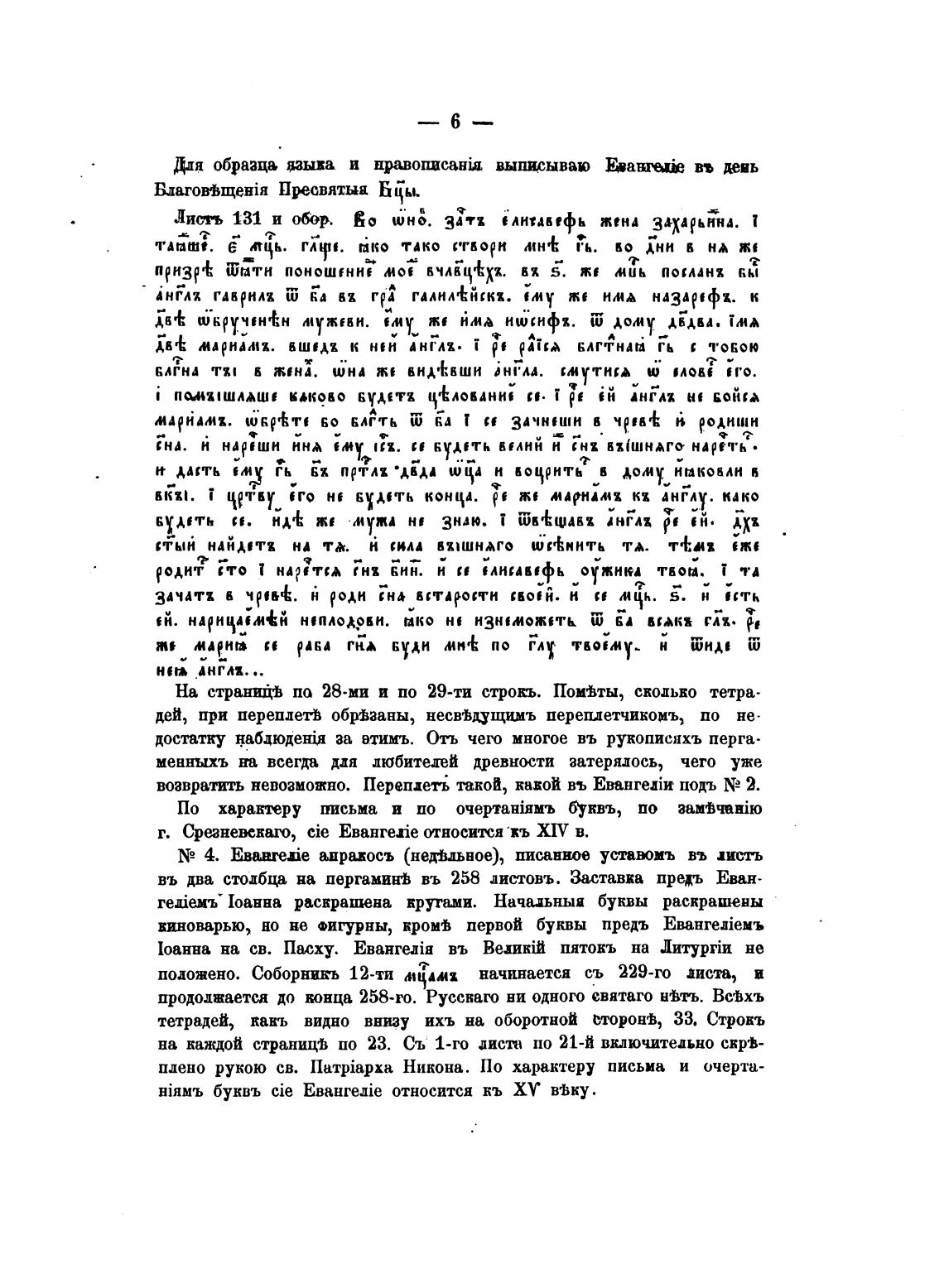 въ два столбца на пергаминј въ 258 лис•говъ. Заставка предъ Еван