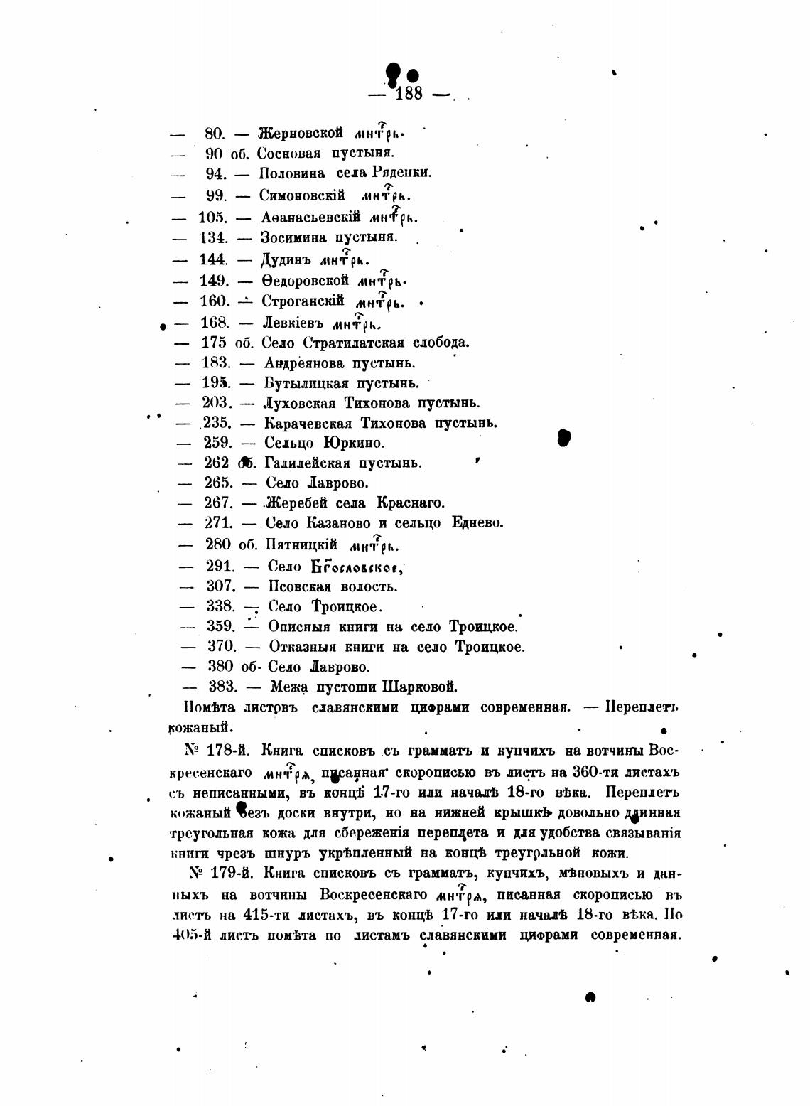 N2 178-й. Книга списковъ .съ граммать и купчихъ на вотчинн Вос-