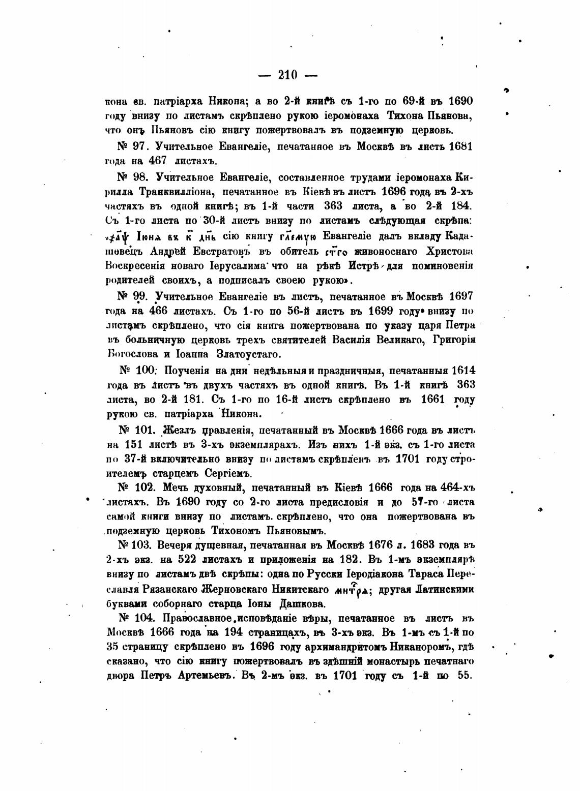 У 102. Мечь духовный, печатанный въ kieyb 1666 года на 464-хъ