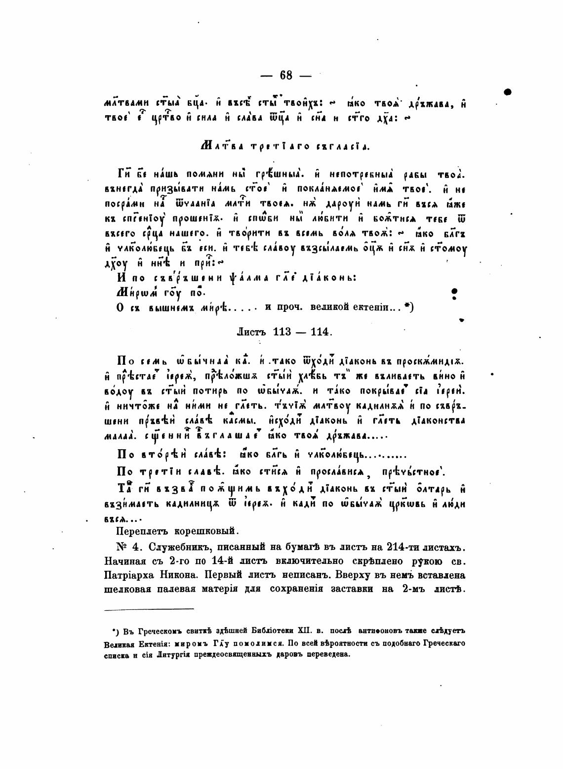 N2 4. Служебникъ, писанный на бумагВ въ листь на 214•ти дистахъ.