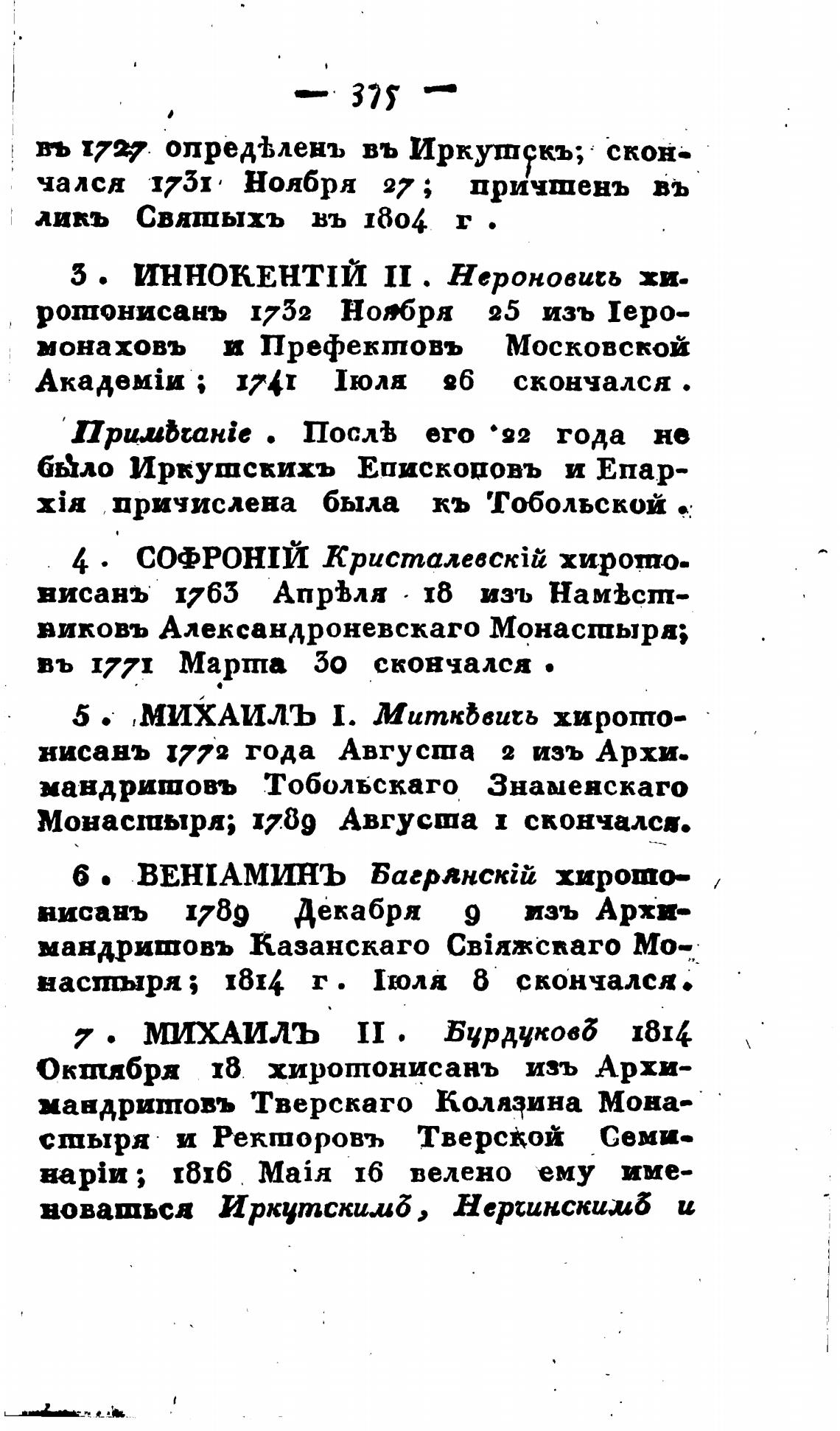 бАло Иркушсвихь Епискововъ и Епар-
