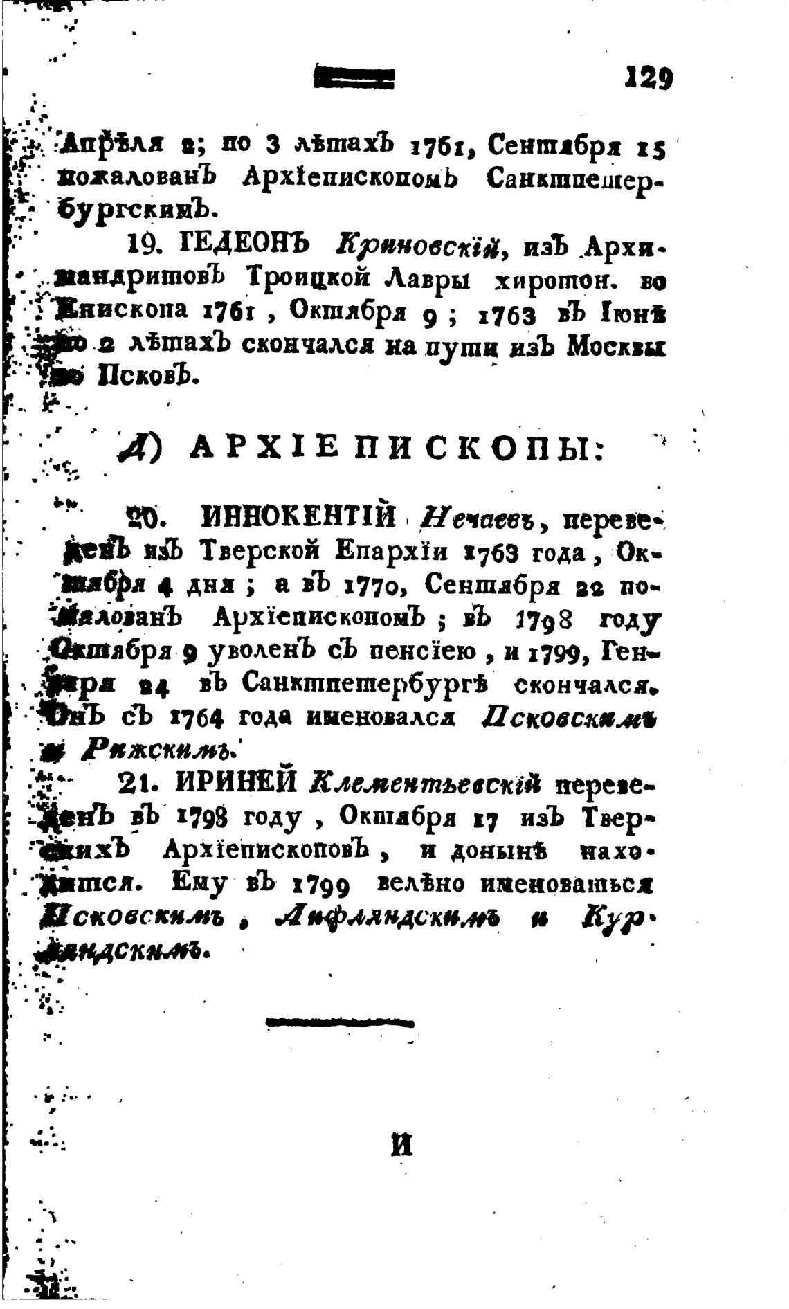 Д) АРХIЕПИСКОПЫ: