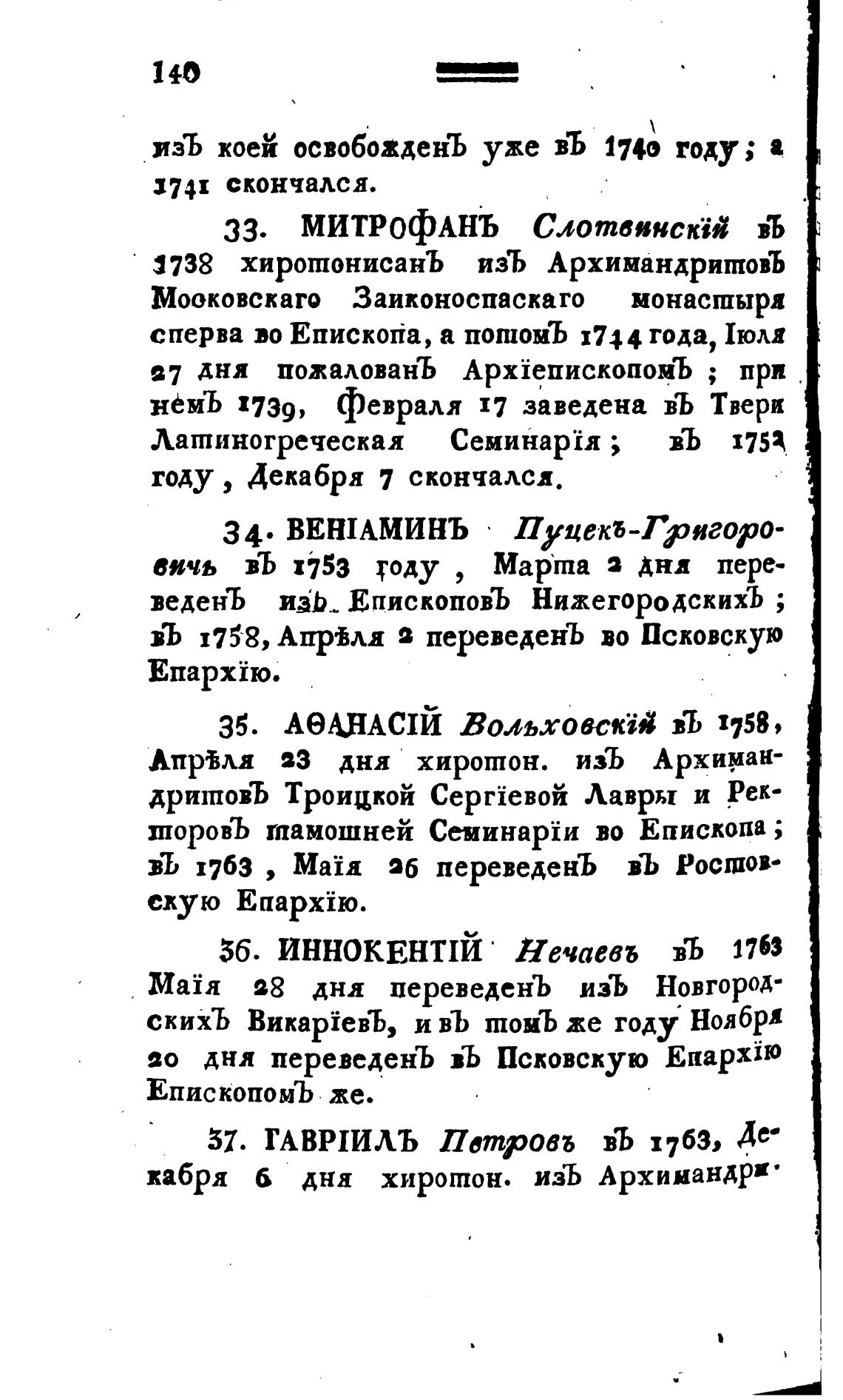 изъ коек освобожденЪ уже въ 1740 а