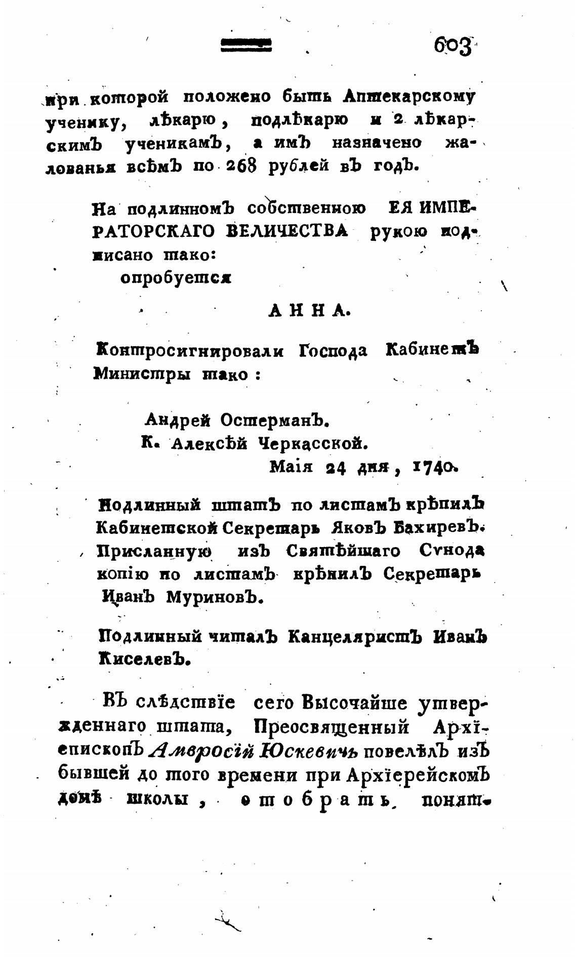 Кабинетской Секретарь ЯковЪ БахиревЪ'