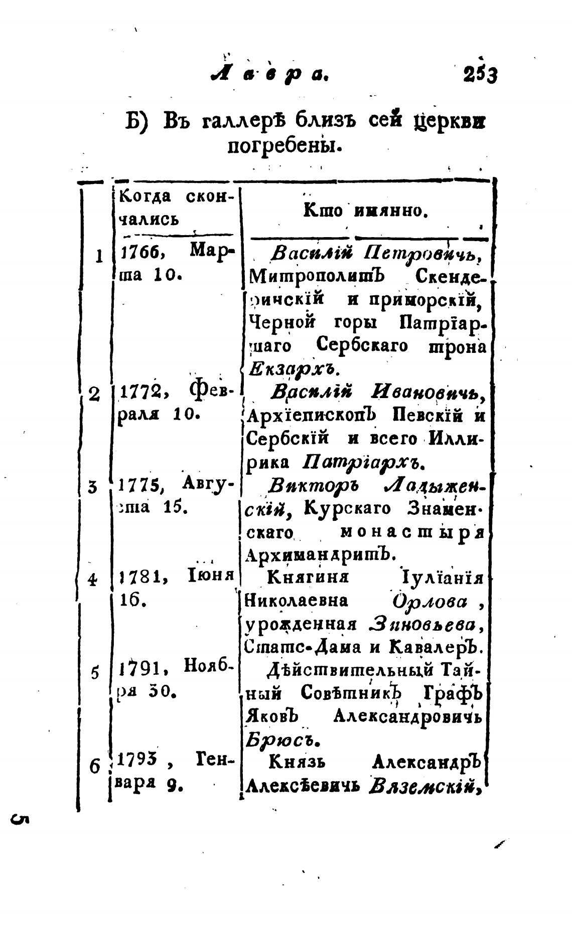 Б) Въ галлерв близь сей церкви