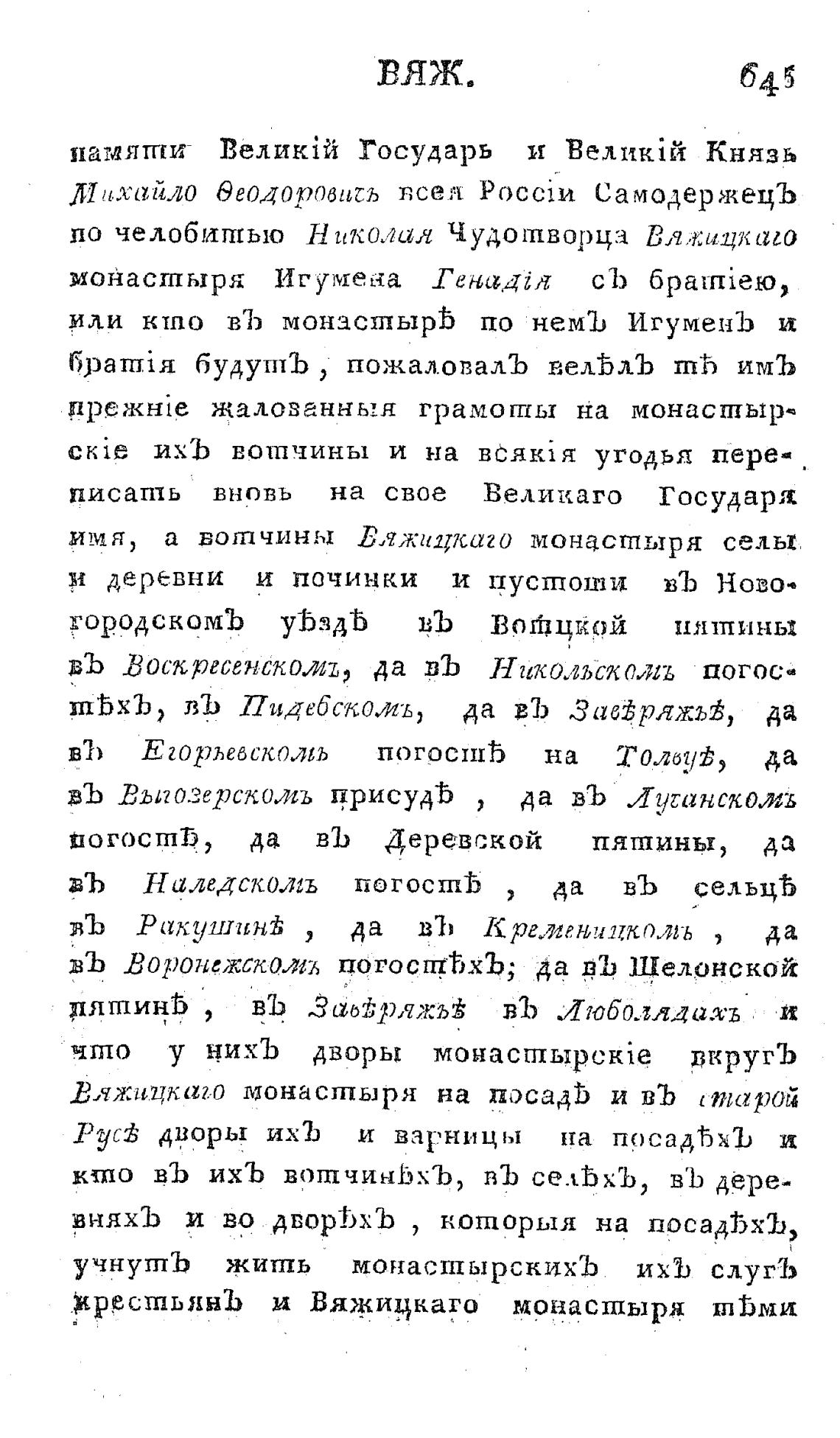 имя, а вотчины Вяжицкаго монастыря селЫ