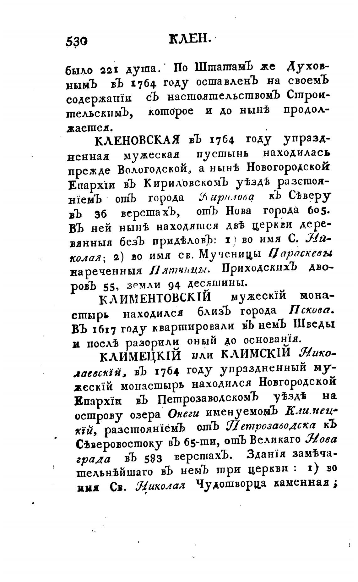 КЛЕНОВСКАЯ въ 1764 году упразд-
