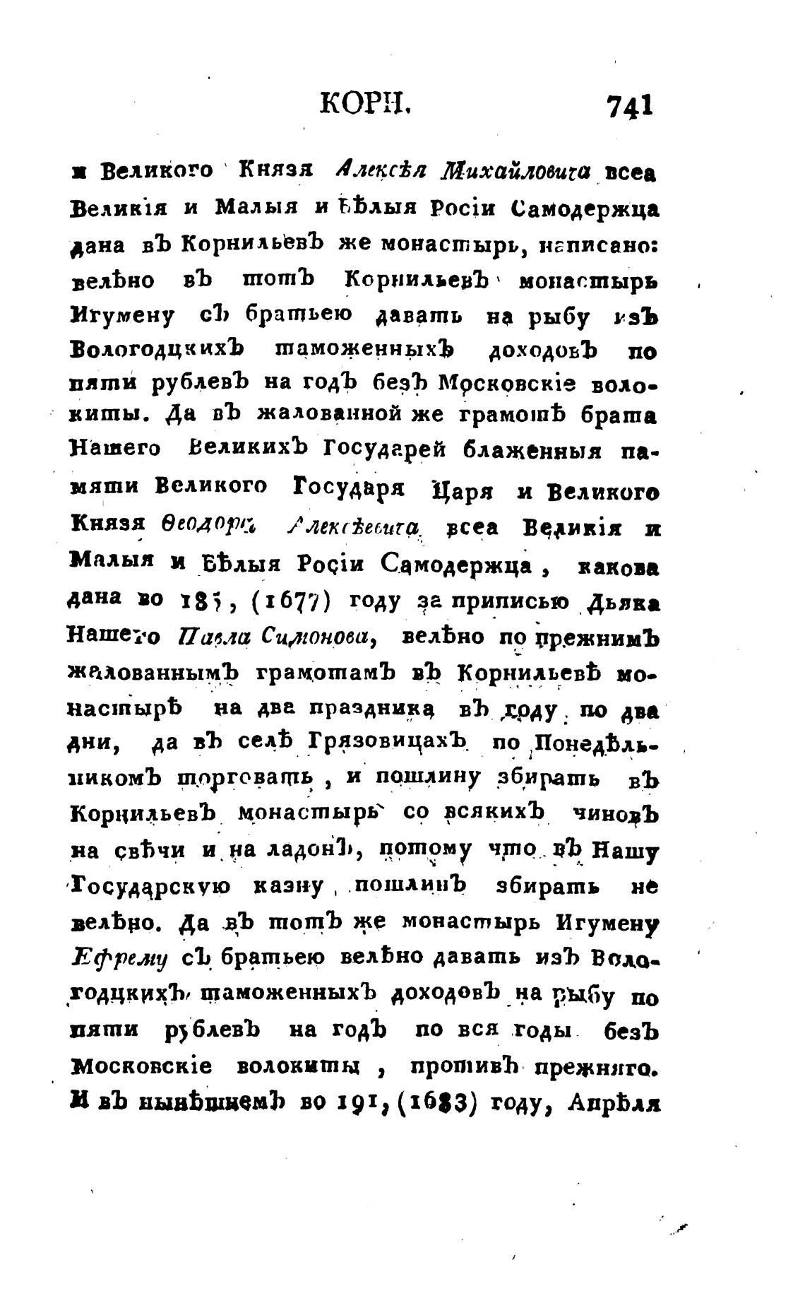 велЬно въ тотЪ КорнильевЪ ' монастырь