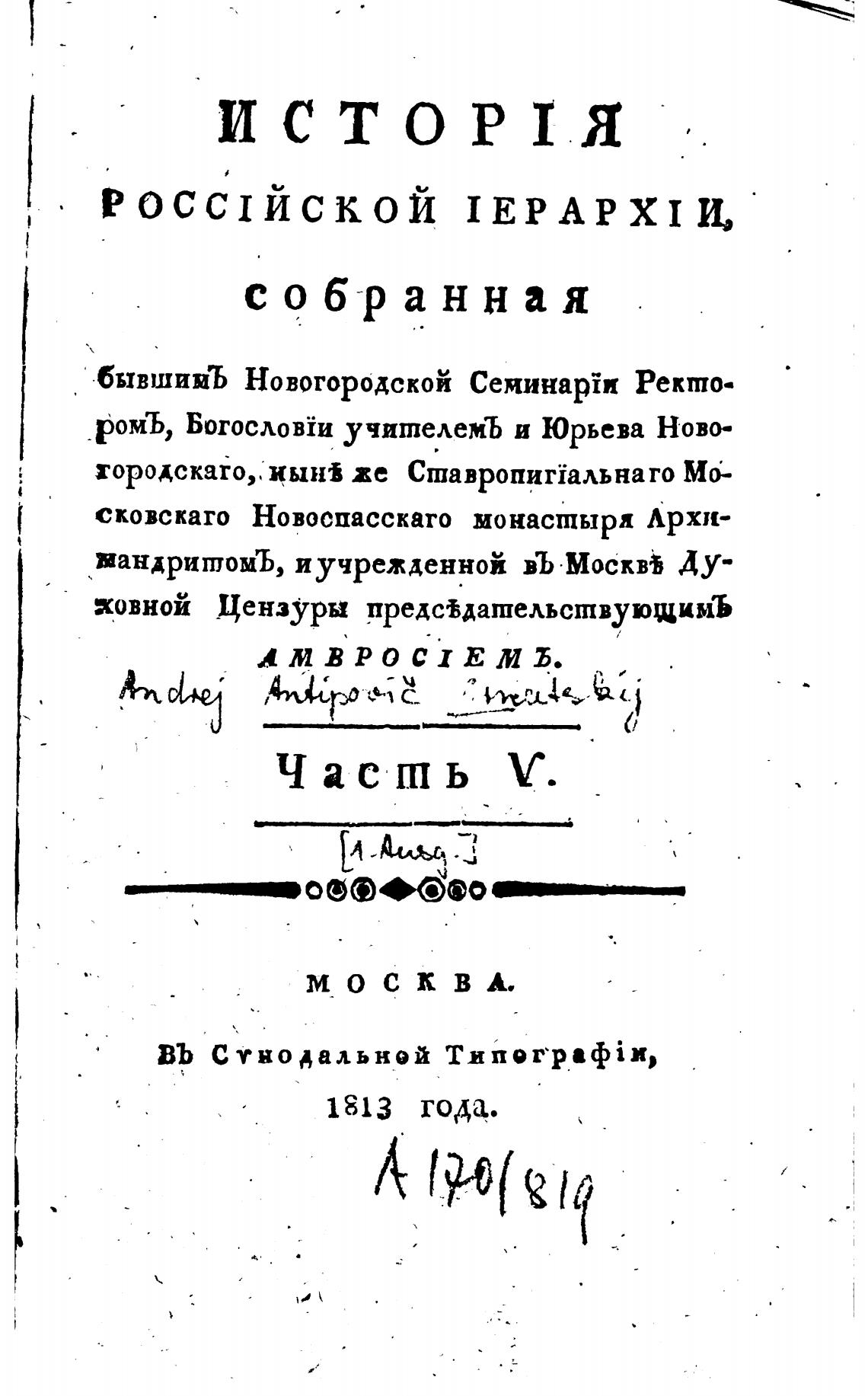 вандришомЪ, и учрежденной въ Москв% Ду-