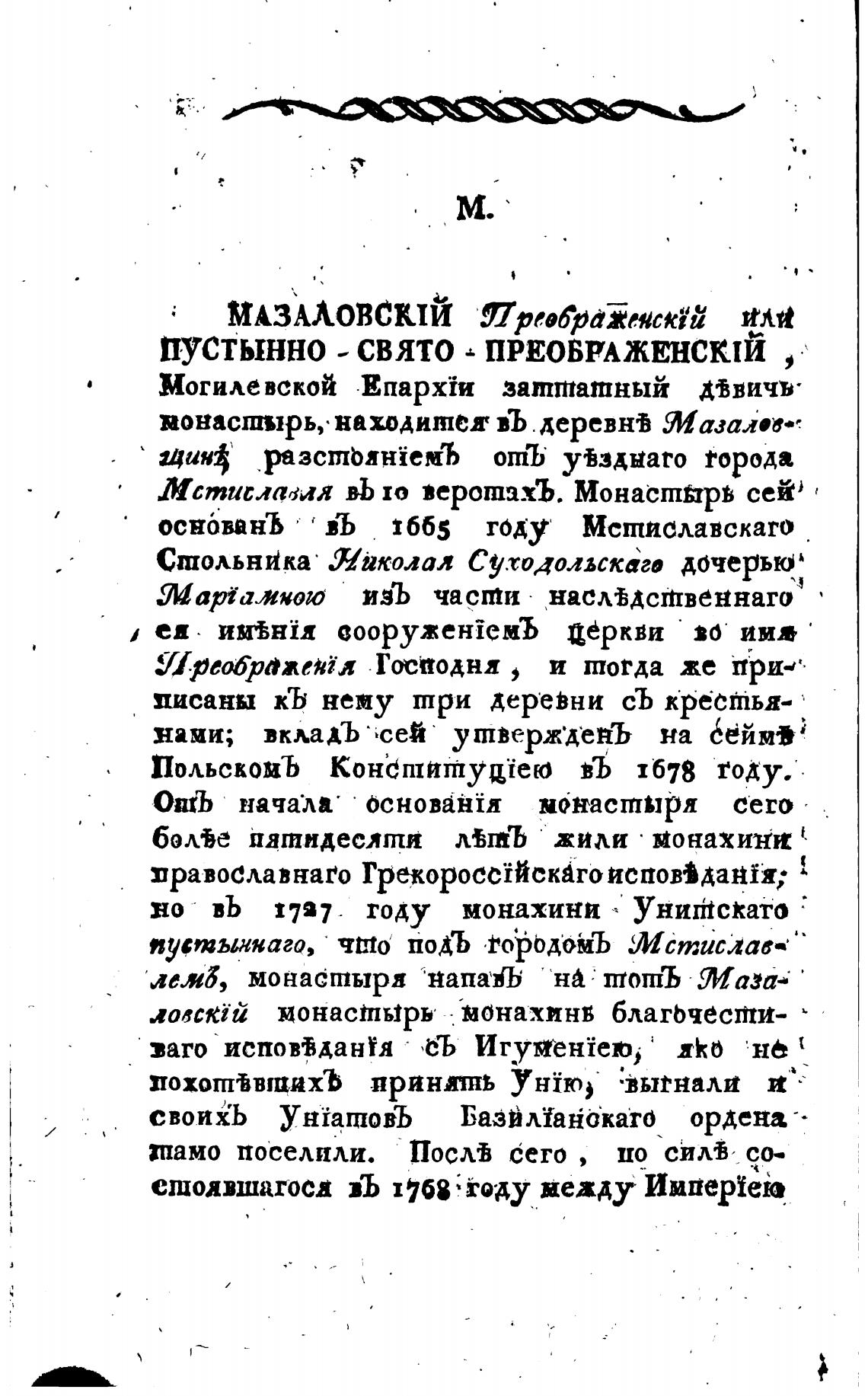 Мстиславля вь 10 верошахЪ. Монастырь сет