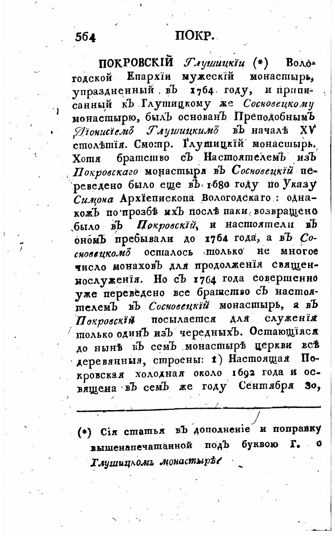 упраздненный , въ 1764, году, и припи-