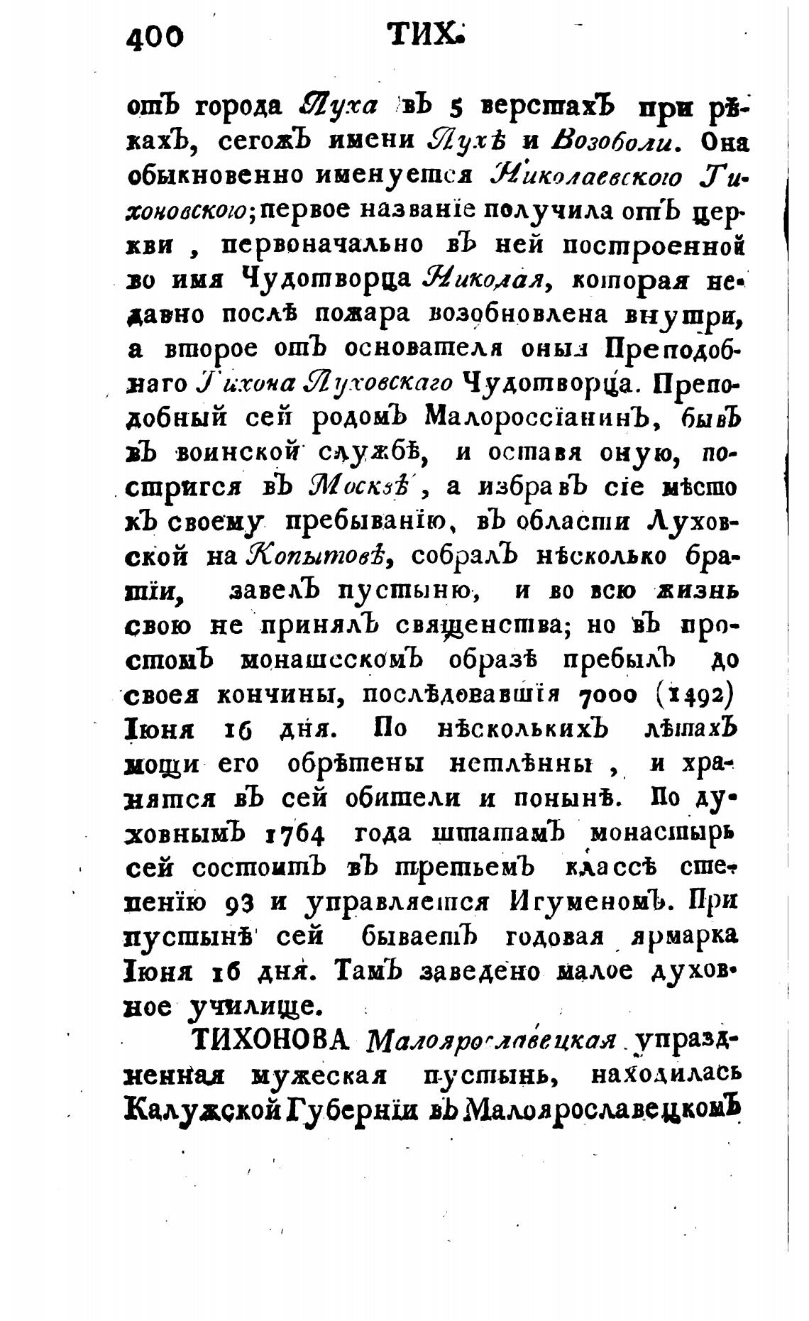 наго .ј•ихона Лутовскаго Чудотворја. Препо-