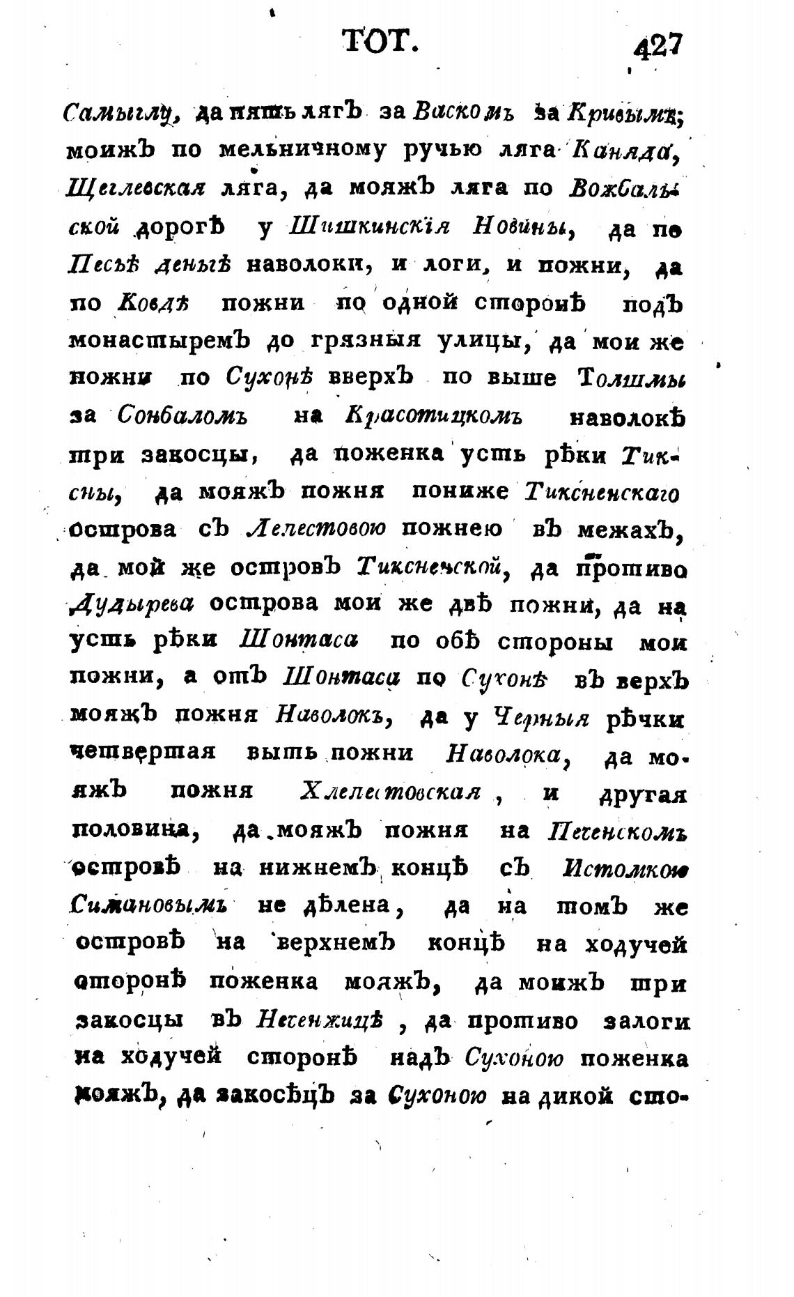 пожни по СухорЬ вверхЪ по выше Толшлы