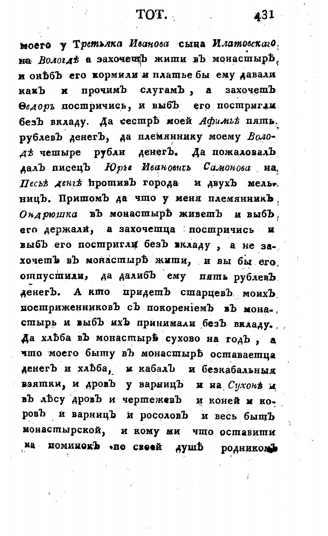 хочетЪ въ монастырь жити, и вы бы его.