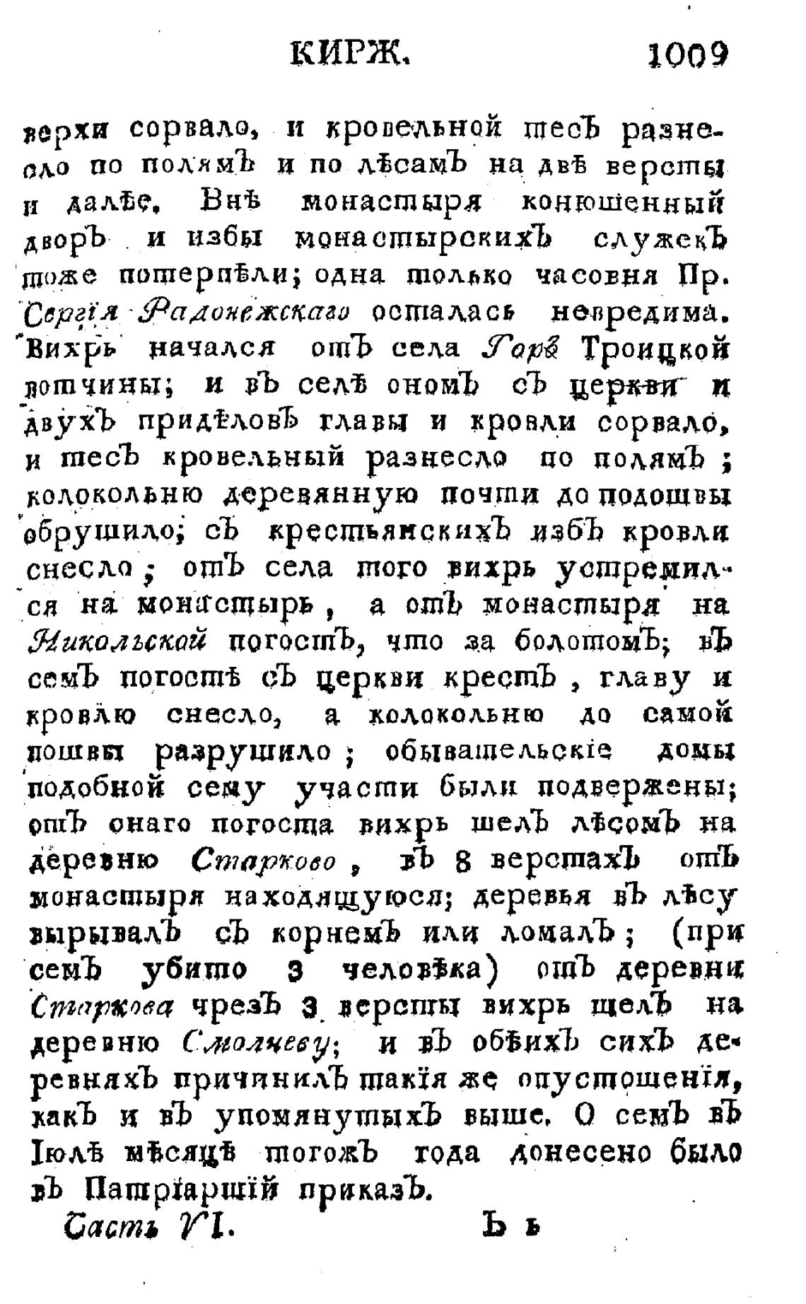 Двухъ приделовЪ главы и кровли сорвало,