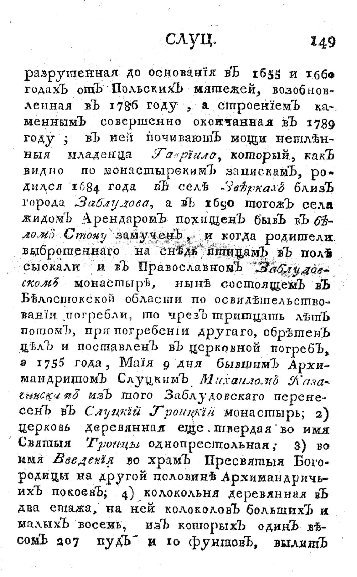 сеКЬ въ Слущкгй Гронцкггг монастырь; 2)