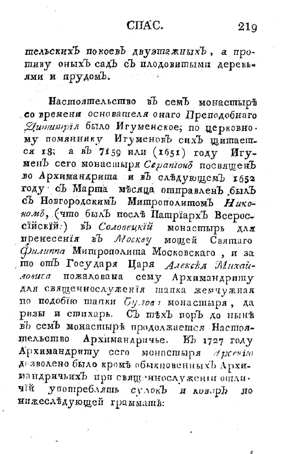 телъсптво Архимандричье. ВЪ 1727 голу