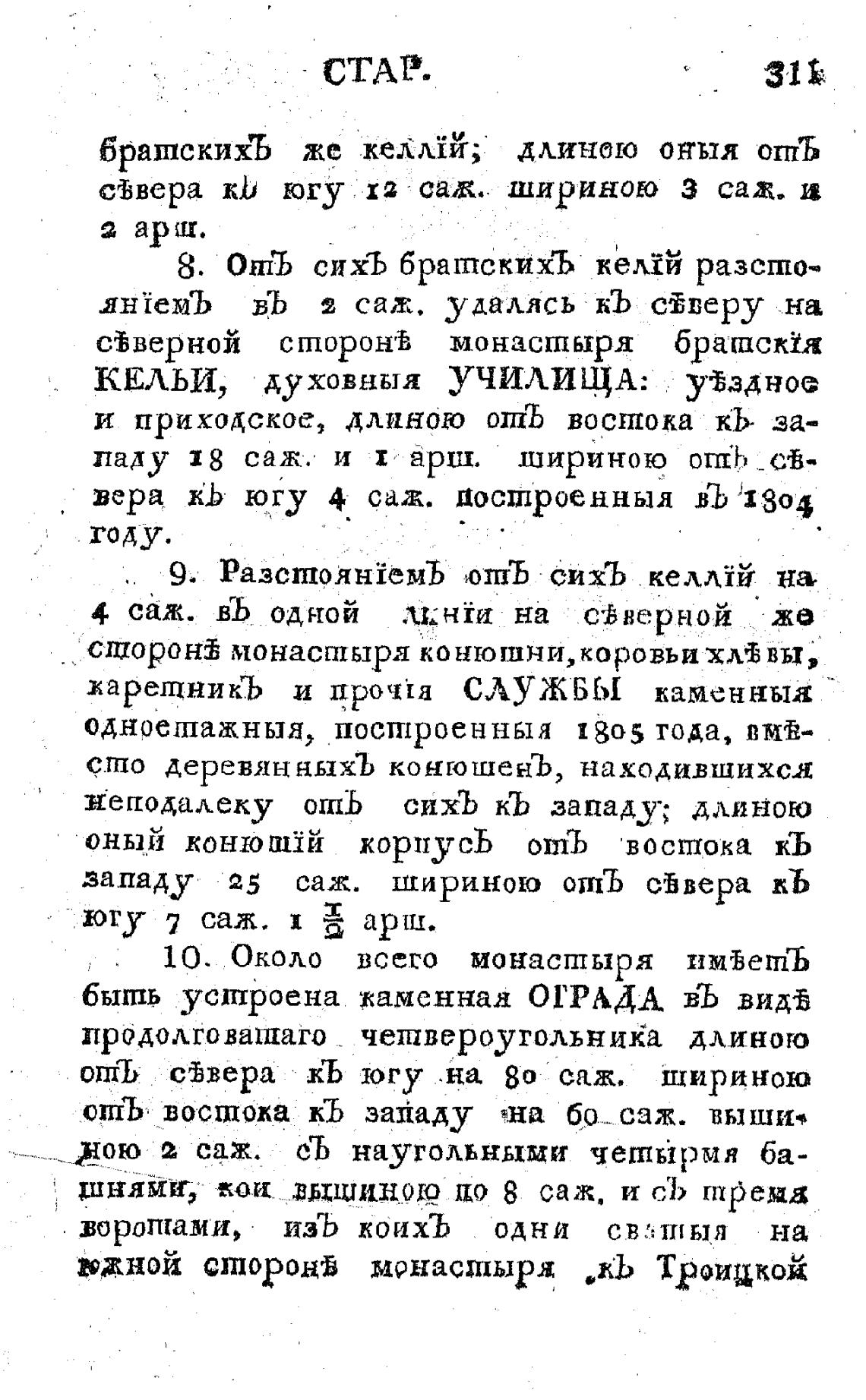 вера югу 4 саж. построенныя въ 1804