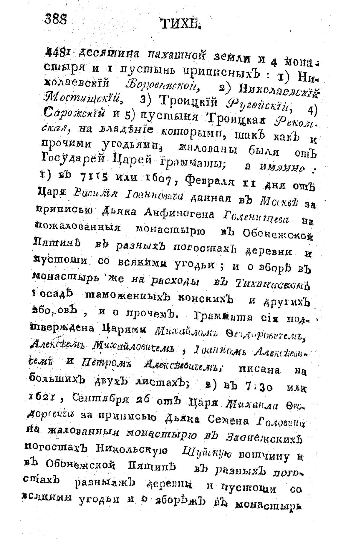 Пожалојанныл монастырю въ ОбонежС<бй