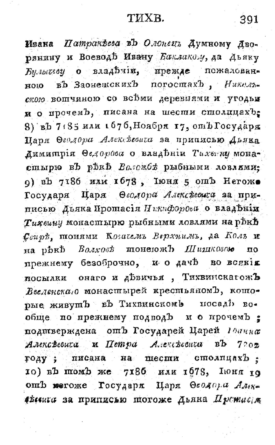 посылки онаго и АЬвичья , ТихвинскагожЪ