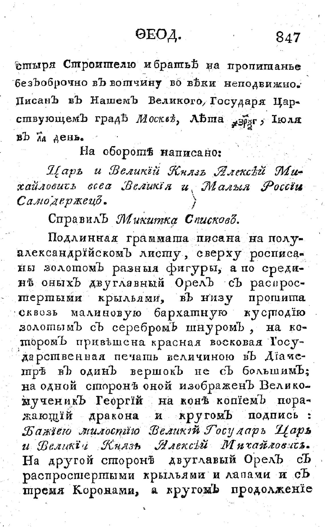 ПисанЪ въ НашемЪ Великогод Государя Цар•