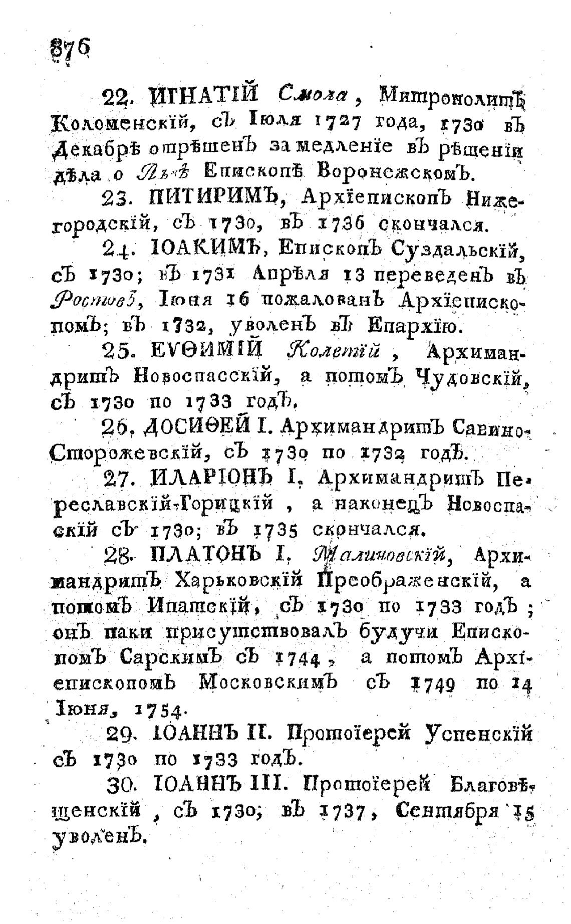 городскјй, съ 730, въ 1735 скончался.