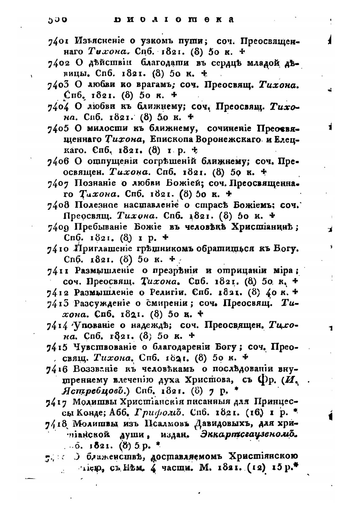 соч. Преосвящ. Тихона. СПб. 1621. (6) 50, к, +