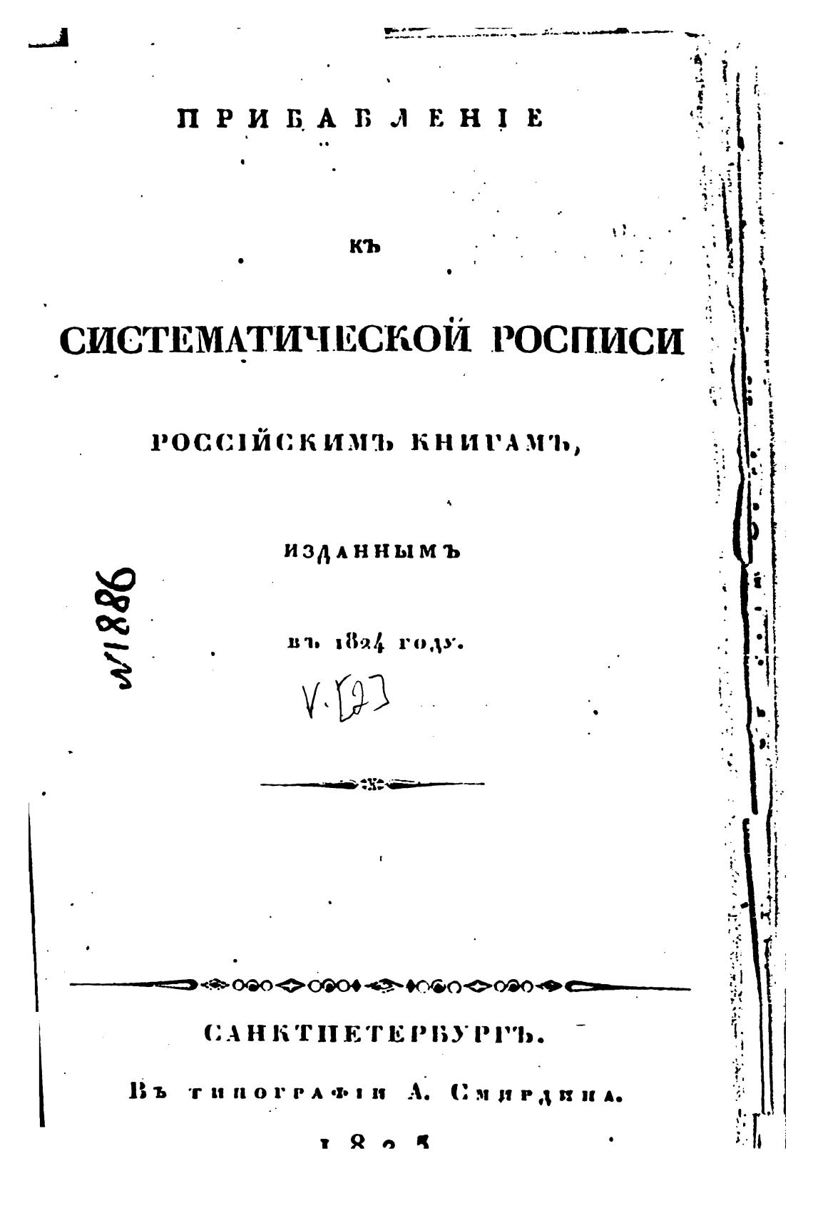 Прибавление к систематической росписи российским книгам, изданным в 1823 году. - Анастасевич В. Г.