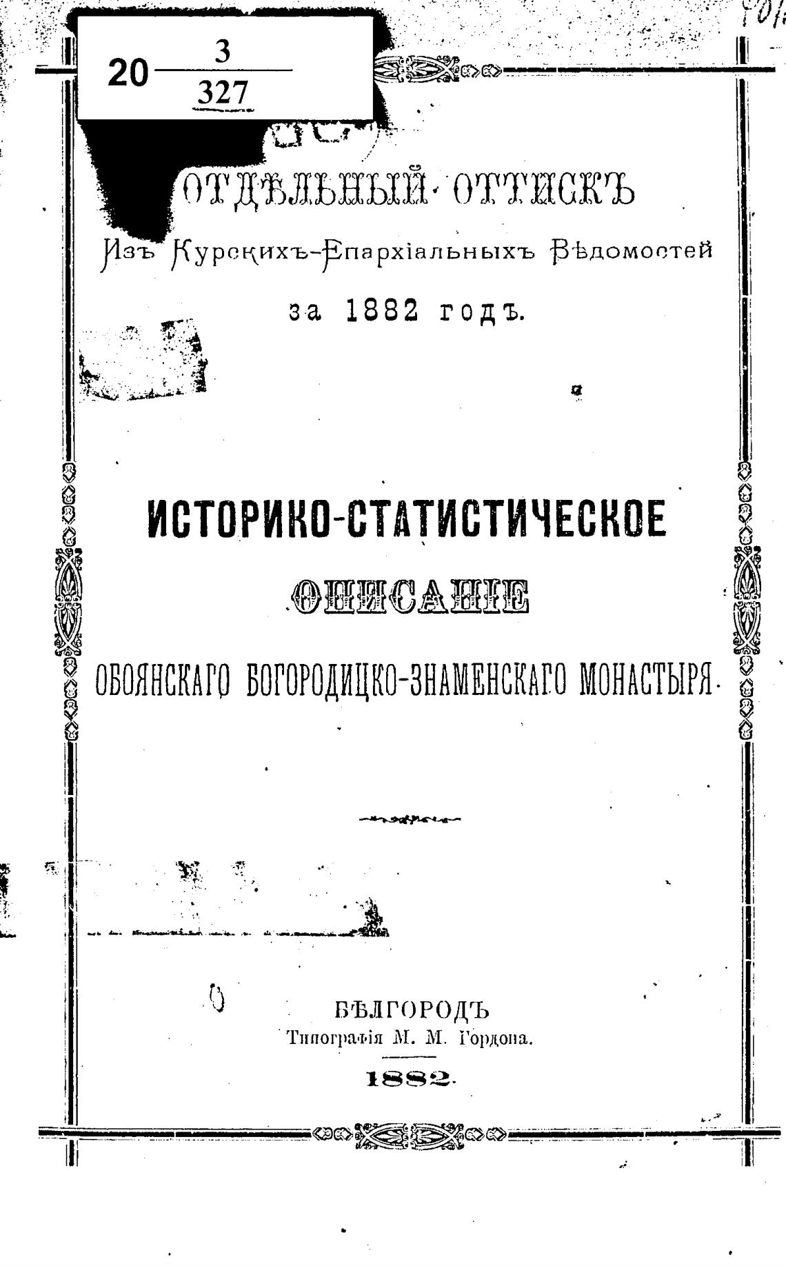 Д ОВОЯНСКАГО БОГОРОДИЦКО-ЗНАМЕНСКАГО МОНАСТЫРЯ. Х