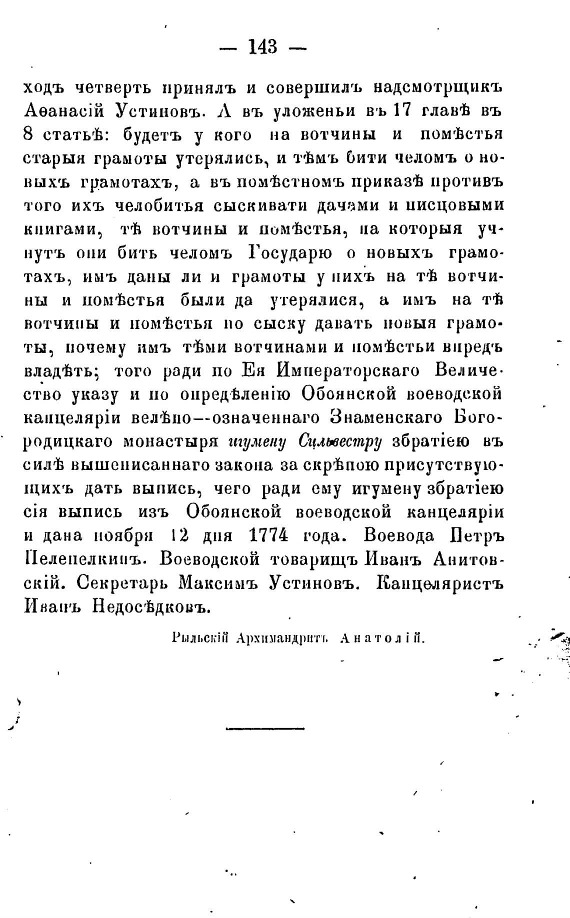 Рыльскйђ Архимандритт, Ан а тол i й.
