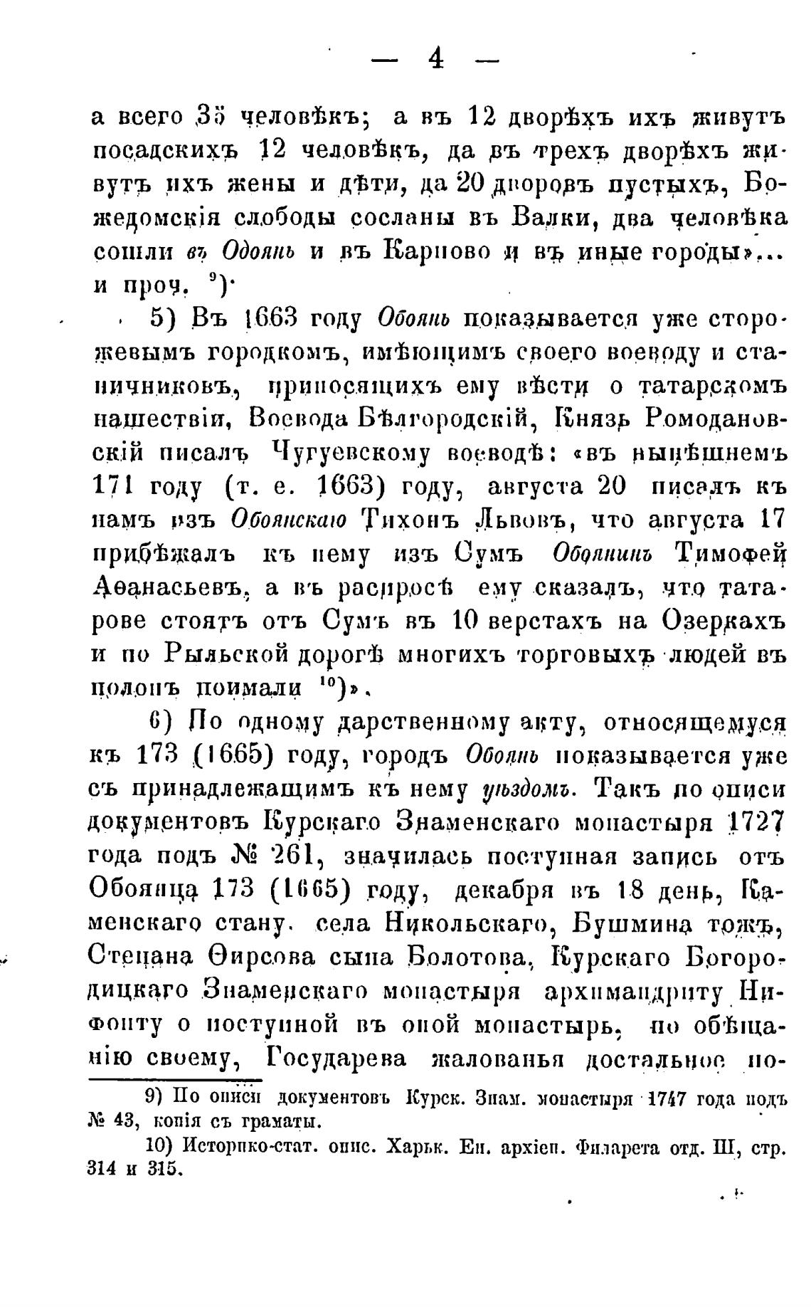 5) Въ 1663 году Обоянь показывается уже сторо•