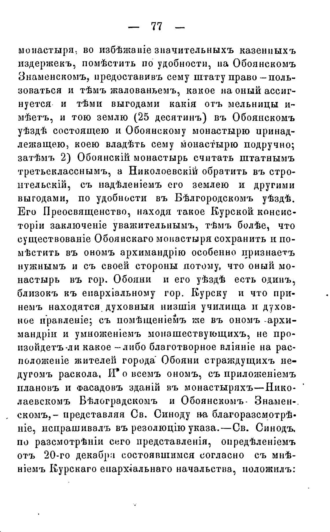 Обоянскаго монастыря сохранить и по-