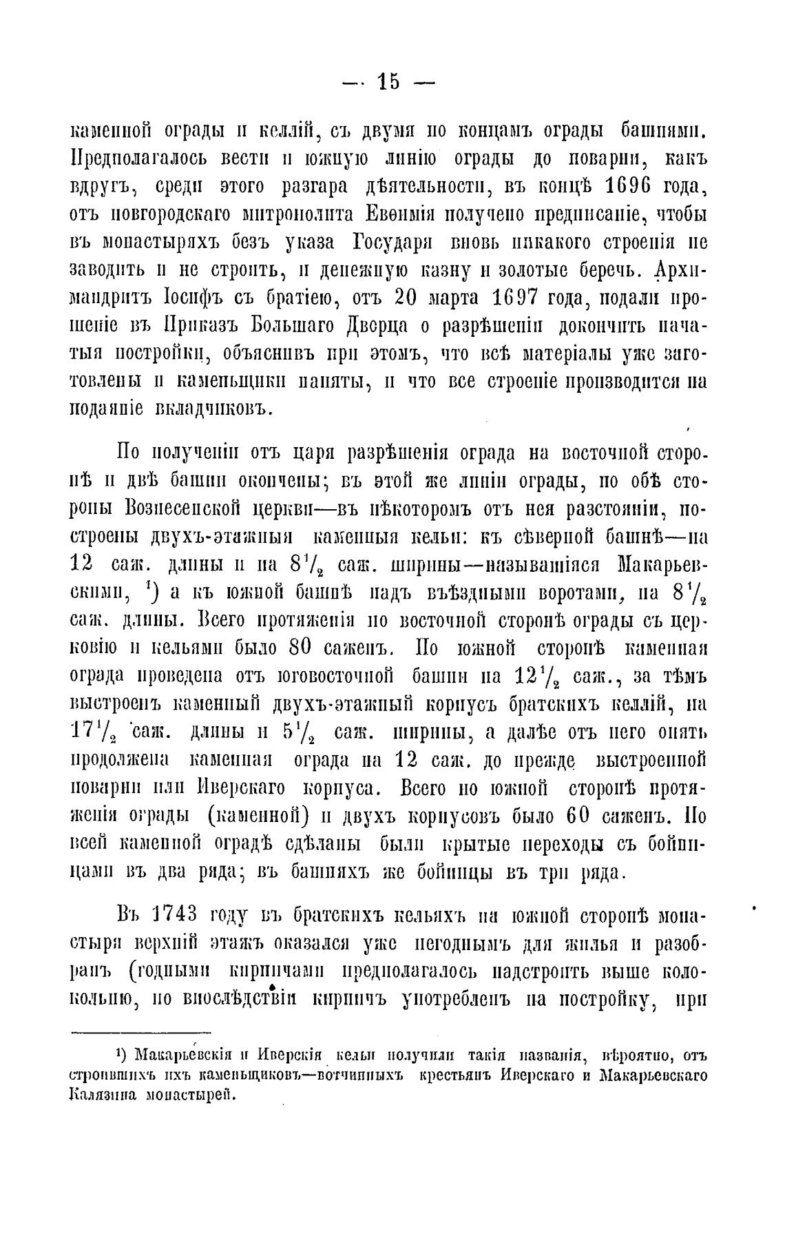 k0Bi10 кельями было 80 сажень. По южной СТОРОП'В каменная