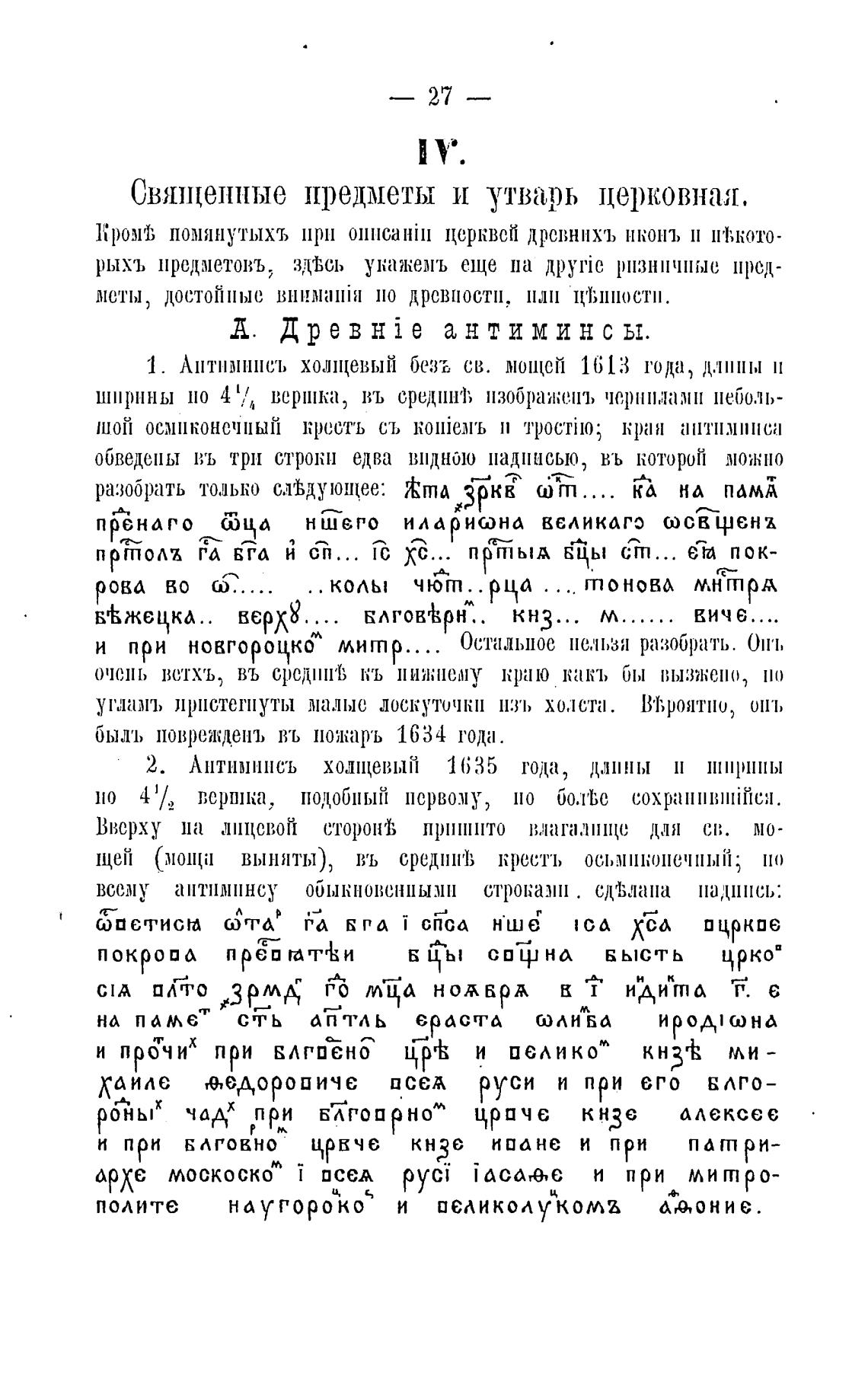 1. АПТНМПНС'Ь ХОЛПРВЫЙ безъ СВ. МШЦОЙ 1613 года, ДЛИНЫ ll