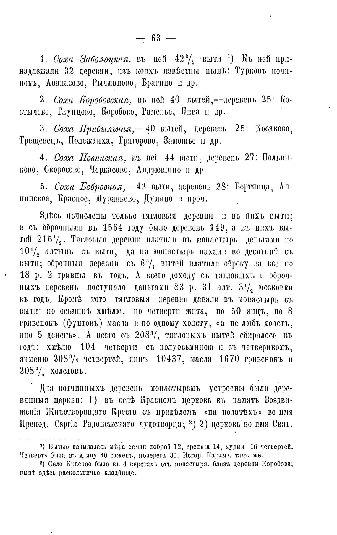 2) Село Красное было вь 4 перстахт, отъ монастыря, близь деревни Коробова;