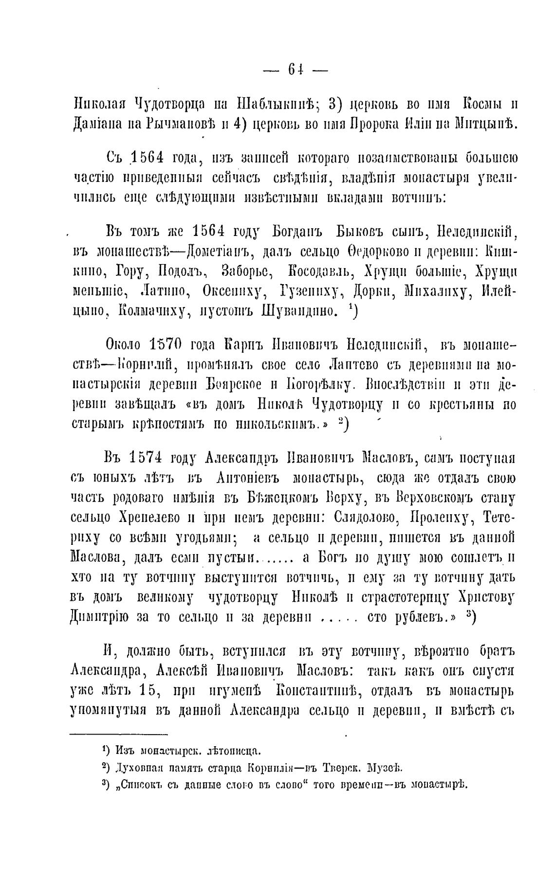 3) „Списокт, съ даппые слово въ слово“ того времеип—въ монастыр•ь.