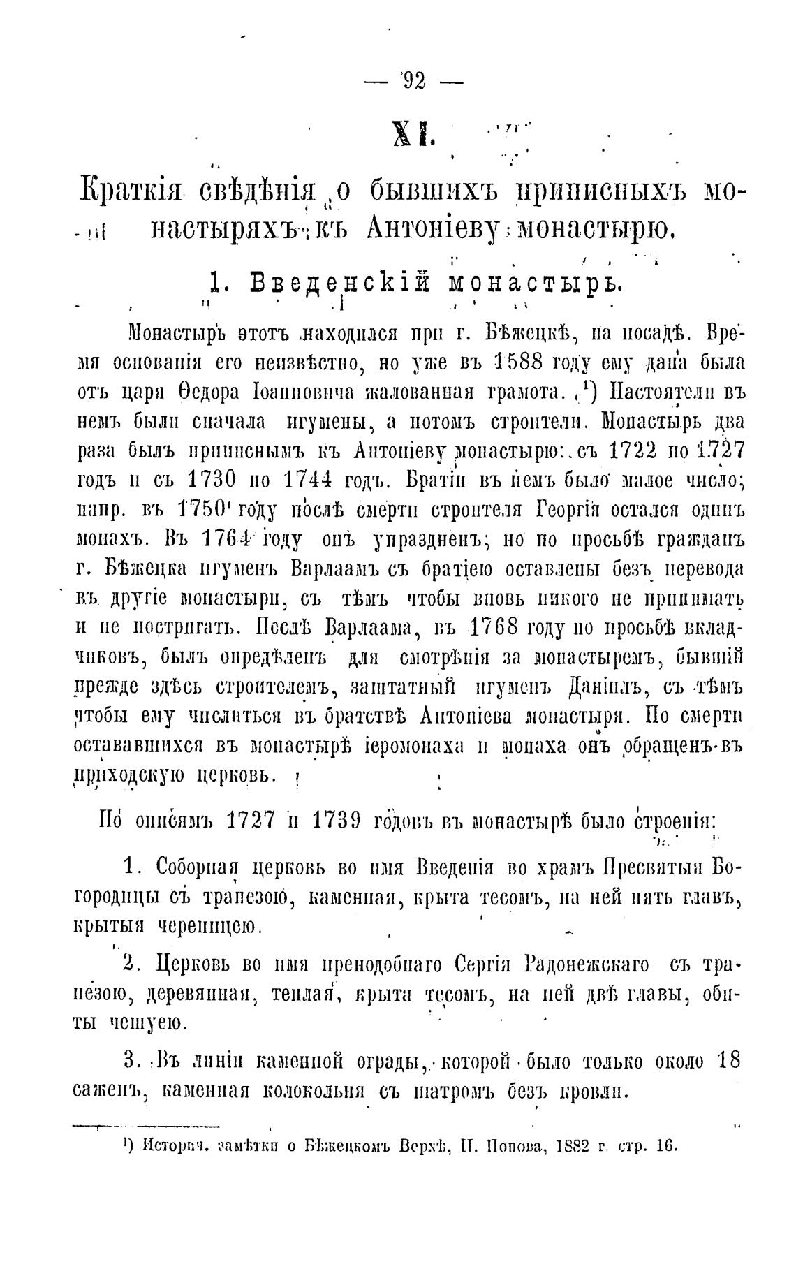 Монастыр'ь этотъ .наХОДПЛСЯ при г. Б'ВЖСЦКЈ;, на посаД'В. Вре•-