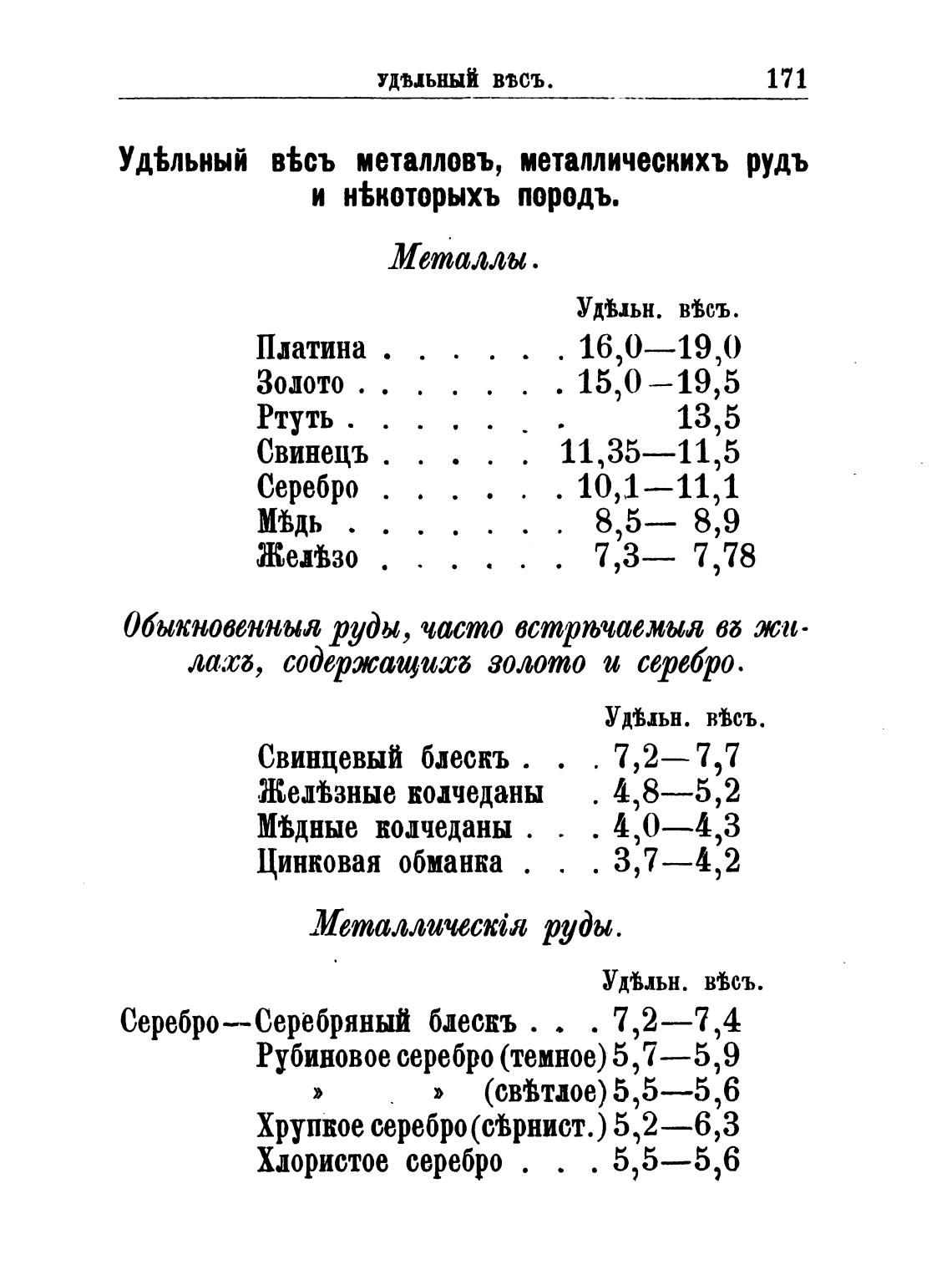 Уд%льный в%съ металловъ, металлическихъ рудъ