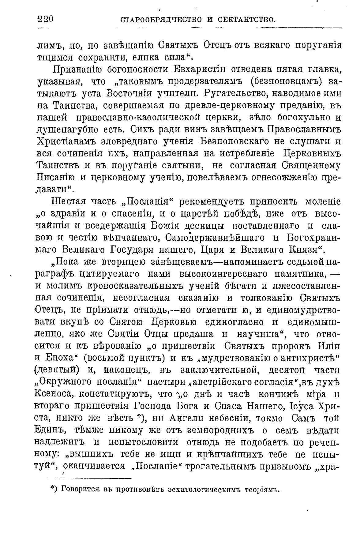 *) Говорится. въ противов•Всъ эсхатологическпмъ